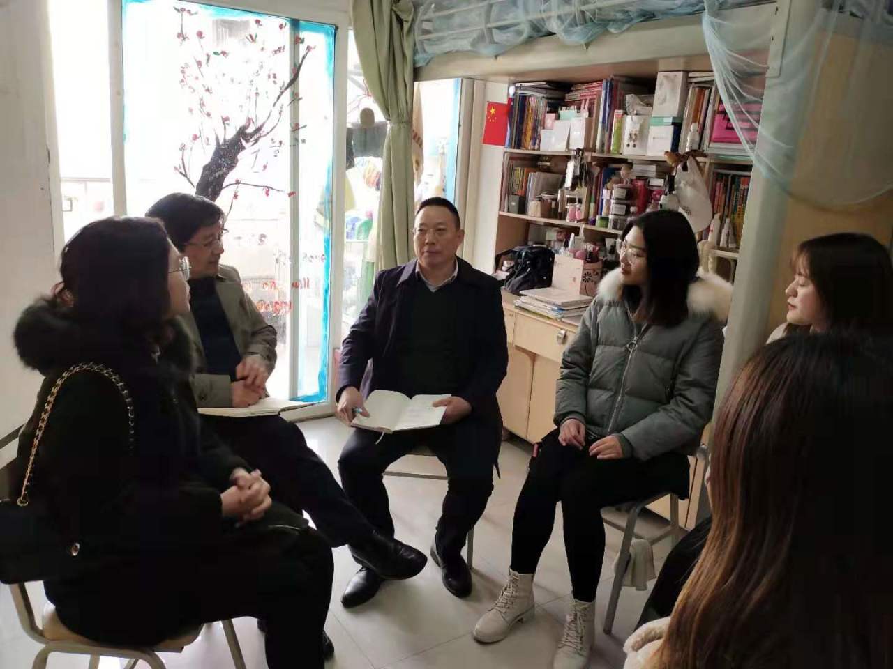 12月5日下午,校党委常委、副校长谭明术,党委委员、OK138太阳集团党总支书记甘长银来到对口联系寝室桂花苑5舍608、8舍323,与同学们亲切座谈。