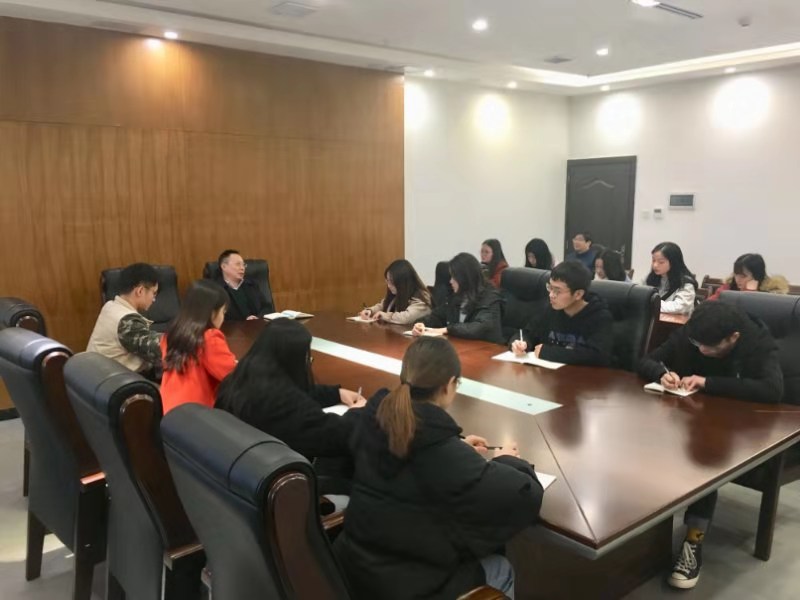 12月5日下午,学校党委常委、副校长谭明术在科技楼801会议室同我校大学生就业协会成员亲切座谈,OK138太阳集团党总支书记甘长银陪同调研。