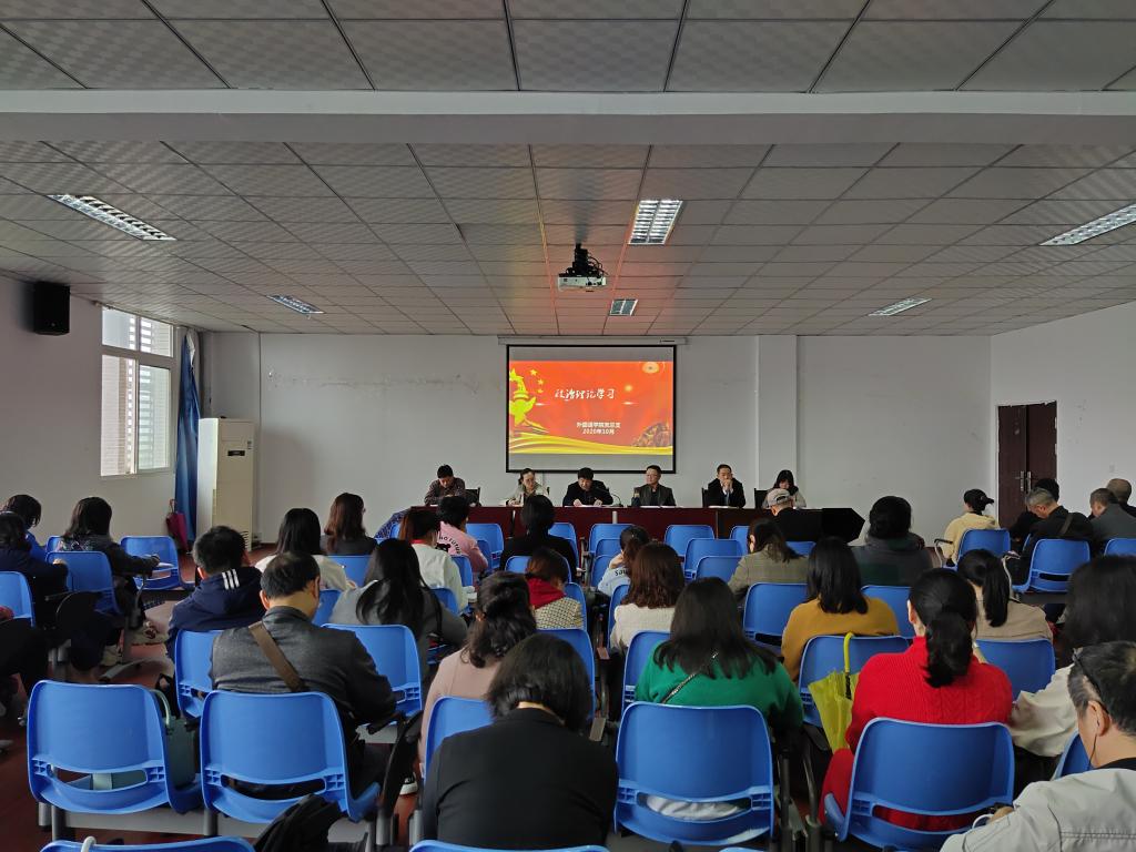 10月15日下午,OK138太阳集团在明辨楼1-604召开全体教师会议,开展政治理论学习。党总支书记甘长银主持学习。