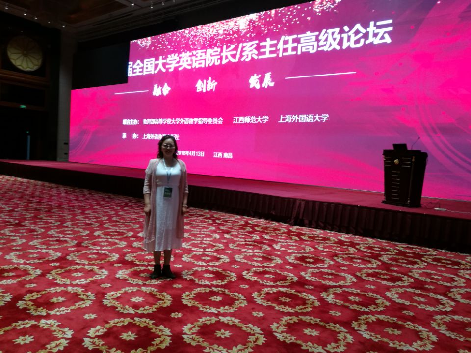 “第八届全国大学英语院长/系主任高级论坛”于 2018 年 4 月 12 日—14 日在南昌举行。本次论坛由教育部高等学校大学外语教学指导委员会、江西师范大学和上海外国语大学联合主办,上海外语教育出版社承办。来自全国各高校外语学院院长、系主任、外语教育领域专家和学者1000多人参加了此次论坛。教育部高等学校大学外语教学指导委员会专家到会指导,南京大学王守仁教授、上海交通大学金艳教授和复旦大学李荫华教授等专家分别围绕新时代大学英语教学的新发展、英语测试与教学、大学英语教材的创新与发展等做了主旨发言。论坛同时设五个分论坛。本届论坛 以“融合 创新 发展”为主题,深入探讨了当前及今后一段时期内大学英语的教学改革以及慕课和翻转课堂教学模式的实施办法。我院大外部派出了谭文芬副教授参加了本次论坛,同与会专家、学者进行了交流、探讨,获益匪浅。