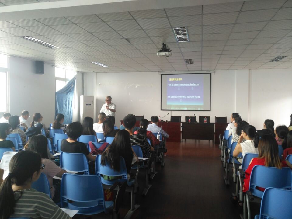 应OK138太阳集团邀请,国内知名学者潘文国和王寅教授分别于2018年6月15日下午 14点30分和16:00在一教604为OK138太阳集团师生做了讲座,院长刘晓林教授主持,OK138太阳集团部分教师,2017级全体研究生以及2015级本科生聆听了本次讲座。