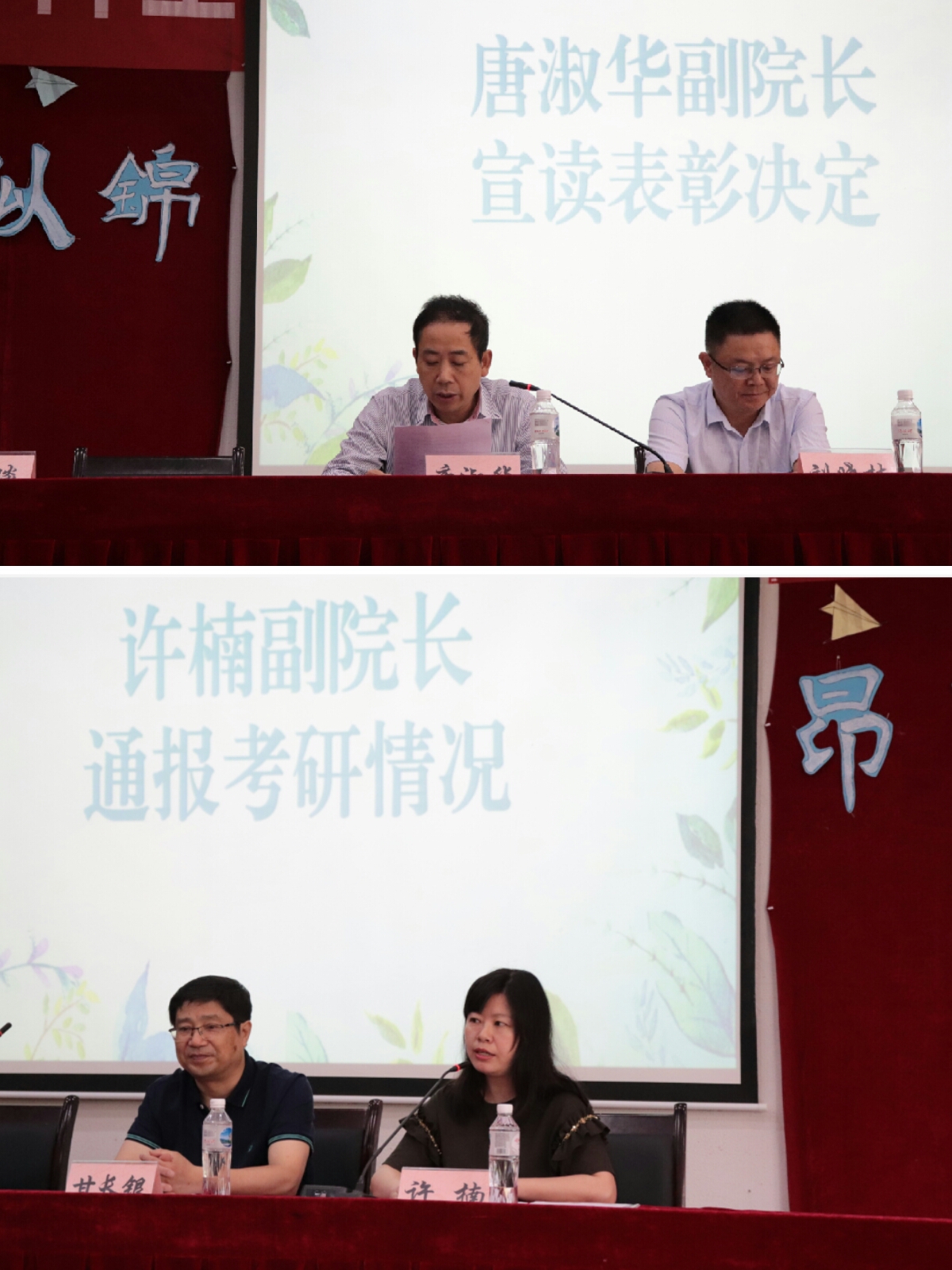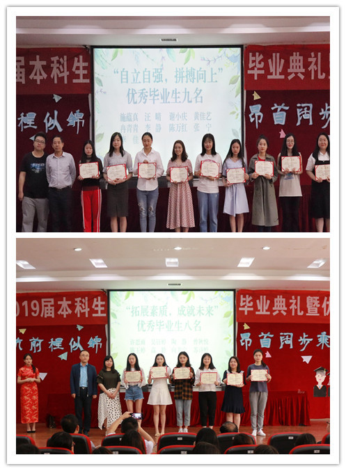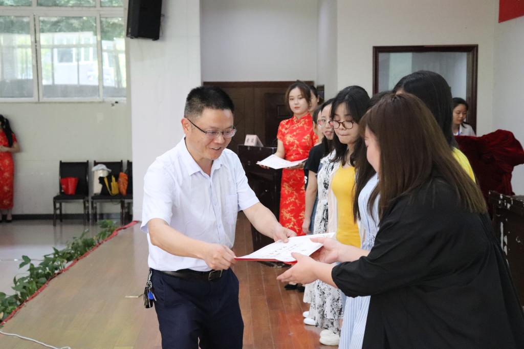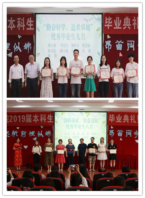 唐淑华副院长宣读了我院2019年优秀大学毕业生表彰文件,许楠副院长通报了2019届毕业生考研情况,并向获得表彰奖励及升研同学们表达了热烈的祝贺。学院党政领导为受表彰毕业生颁发了荣誉证书,并向全体毕业生赠送了毕业纪念品。