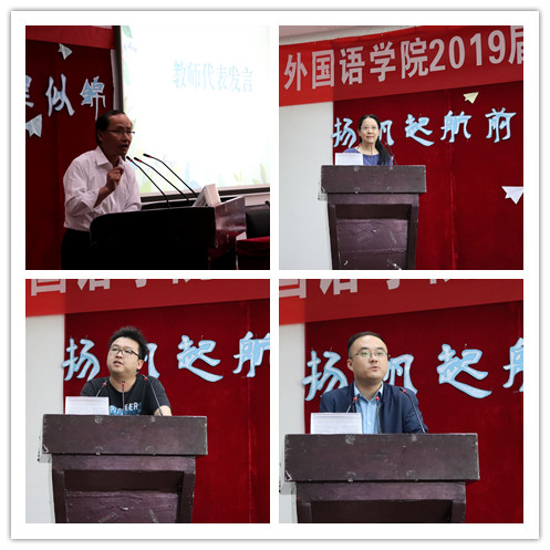 专业课教师殷蜀红、马仁良、王浩、程谢代表教师向毕业生送上临别赠言,希望大家以母校为起点,去开启一段全新的、更加幸福的人生。学生代表孙贝贝进行发言,她表达了对母校、老师的感恩和一起奋斗的同窗好友的不舍之情,并热情而坚定的展望未来,用信心和力量为同学们加油。