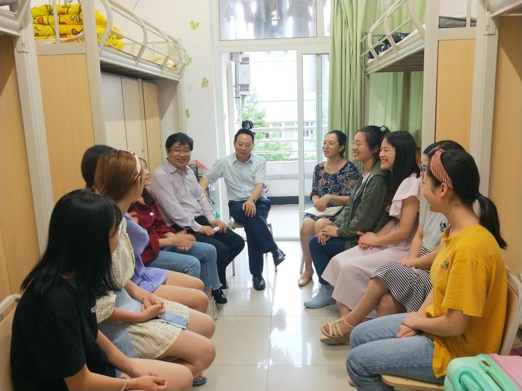 6月28日下午4:00,谭校长、甘书记又来到桂花苑的5舍608寝室和8舍323寝室,通过走访座谈与学生开展深入地交流,全面了解学生思想动态,引领学生成长成才。在会谈中,谭校长亲切询问了寝室每位同学的学习及生活状况,详细了解同学们在生活中遇到的困难,并结合学生所学专业提出建议,鼓励大家要好好读书,在关键时期做好人生规划。同学们也畅所欲言,充分表达了对学院专任教师的认可、对学校后勤服务的满意。同时对学校教学、寝室设施等方面提出询问和建议。针对同学们的问题,谭校长做出一一解答,并从自身谈起,与同学们分享他的学习生活经验,鼓励同学们在提升专业能力的同时要培养有益身心的兴趣爱好,全方位提升自我,勇于实践,度过充实且有质量的大学时光,让人生更富有意义。甘书记给予同学们几点建议:专业学习必须下一番功夫,要熟能生巧并举一反三;要正确认识和评价自我,注重培养核心竞争力,善于发现自己的优点和长处,去牢牢把握人生机遇,在未来大展宏图;寝室要营造积极向上的文化和氛围,室友之间要互相激励、互相促进,一起向着更好的方向发展和努力。
