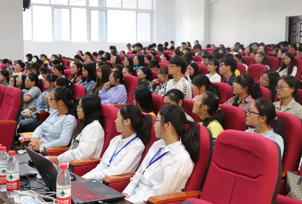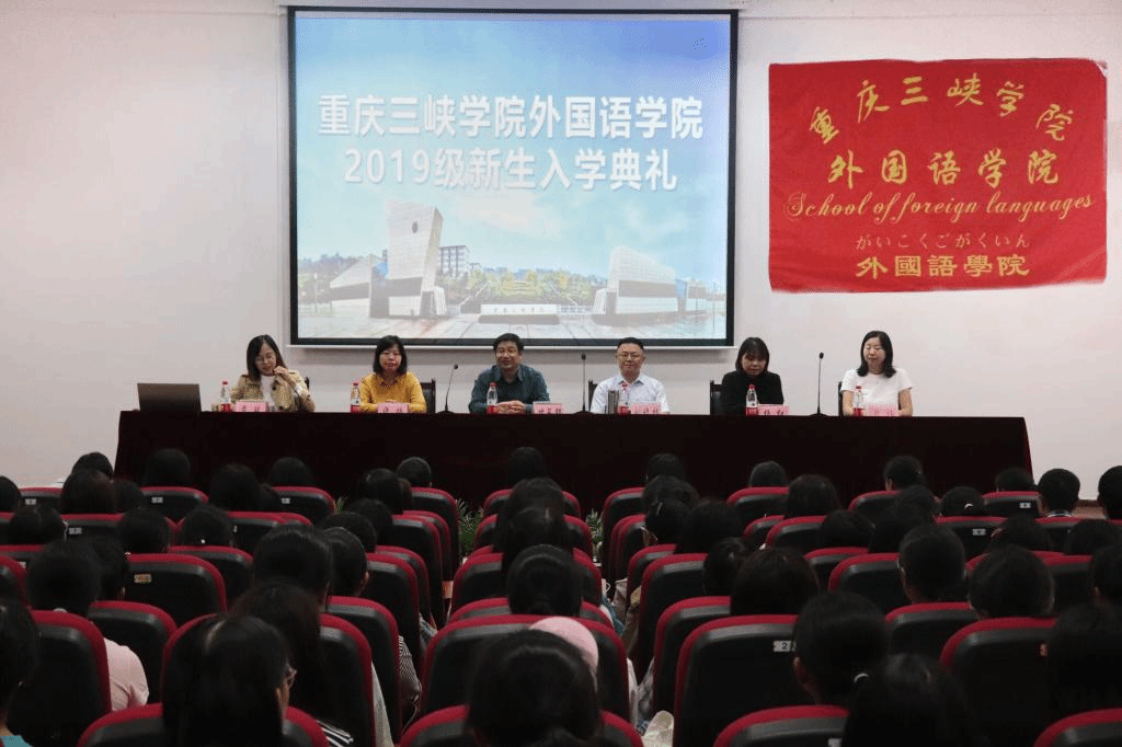 9月23日上午8:15,OK138太阳集团2019级新生入学典礼在明辨楼2栋106举行。学院党总支书记甘长银、院长刘晓林、副院长许楠、党总支副书记黄琰、日语系主任杨红、教务助理肖祎出席了本次活动,2019级全体新生及老生代表参加了本次典礼。