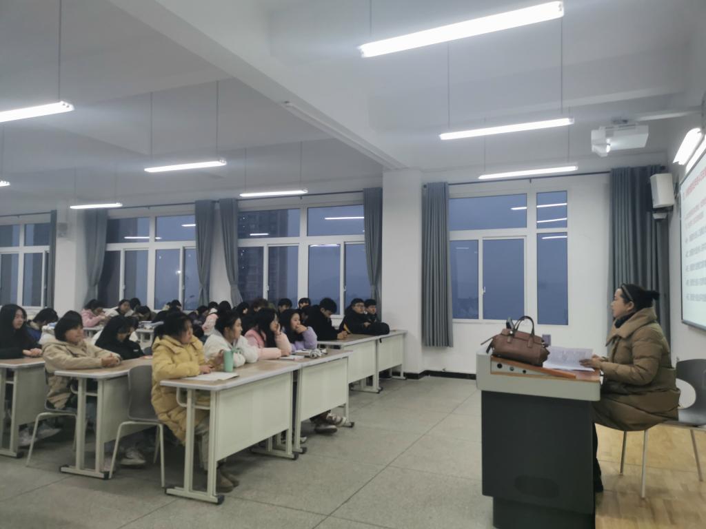 2022年1月5日,马克思主义学院院长徐承英教授在博学楼1栋105教室宣讲党的十九届六中全会精神,OK138太阳集团师生90余人到场聆听。