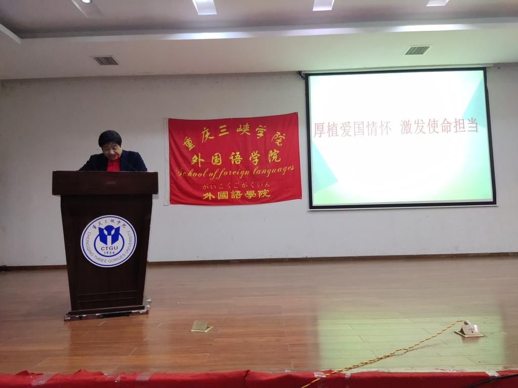 副院长许楠以“热爱外语专业学习,凸显专业核心价值”为题,要求学生在学习中不但要提升基本技能,更应该注重启迪思想、熏陶情操、担当社会责任。副院长唐淑华结合疫情期间自身在英国的亲身经历,向同学们再次讲明了社会主义制度的优越性。党总支副书记黄琰以“珍爱生命,不负青春”为题,从当前少数同学存在的目标缺失、情绪低迷等现状引入主题,引导同学们多为奋斗找理由,少为懒惰找借口。