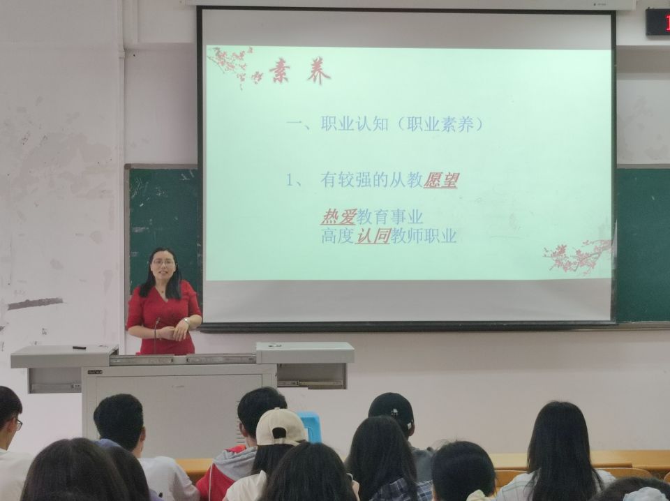 为充分培养我院英语师范专业学生的从教意愿和教师素养,2021年5月27日下午,特邀我院2001届优秀校友、重庆市初中英语学科教学名师、万州区初中英语名师工作室主持人、重庆市万州国本中学教务主任、高级教师向绍红,为我院2019级英语师范专业学生作了一场题为《教师的角色定位与专业素养》的专题讲座。向老师结合自己30多年的从教经历为大家作了一场精彩的讲座,讲座主要从八大教师素养、五种教师角色、优秀教学案例的启示三方面展开。向老师鼓励同学们刻苦学习、培养积极的教师观、教育观和学生观,立志成为未来学生心目中的最优秀教师。在近两个小时的讲座中,向老师结合中学教师资格考试,通过丰富的教学案例对教师必备素养、教师角色定位加以分析。向老师细致入微的讲解、丰富有趣的案例、声情并茂的语言、深深地打动着在场的每位师生。
