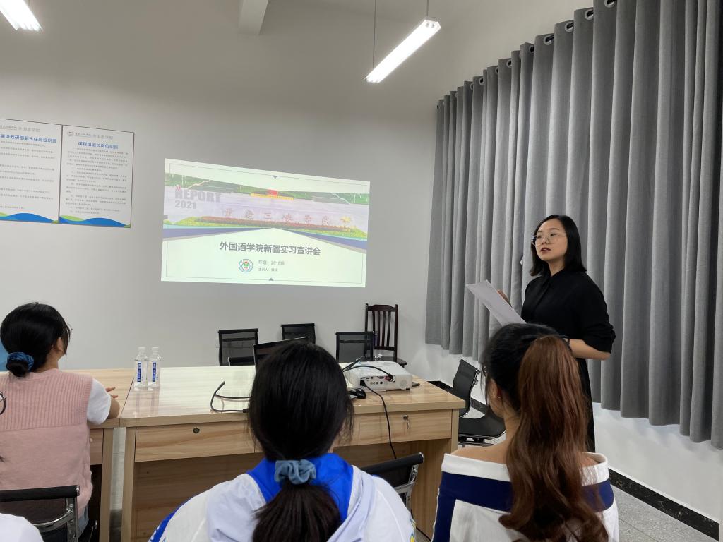 为动员青年学生响应国家“一带一路”倡议,踊跃报名赴新疆实习,扎根边疆、建功立业,6月3日下午,学院在博学楼3栋303召开2018级新疆实习宣讲会,党总支副书记黄琰到会宣讲。