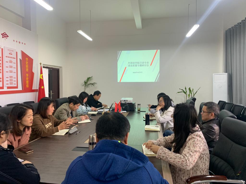 4月7日下午,我院在博学楼3栋315召开日语专业建设质量研讨会,参加人员包括学院领导、教务助理、专业教学秘书和日语系全体教师。