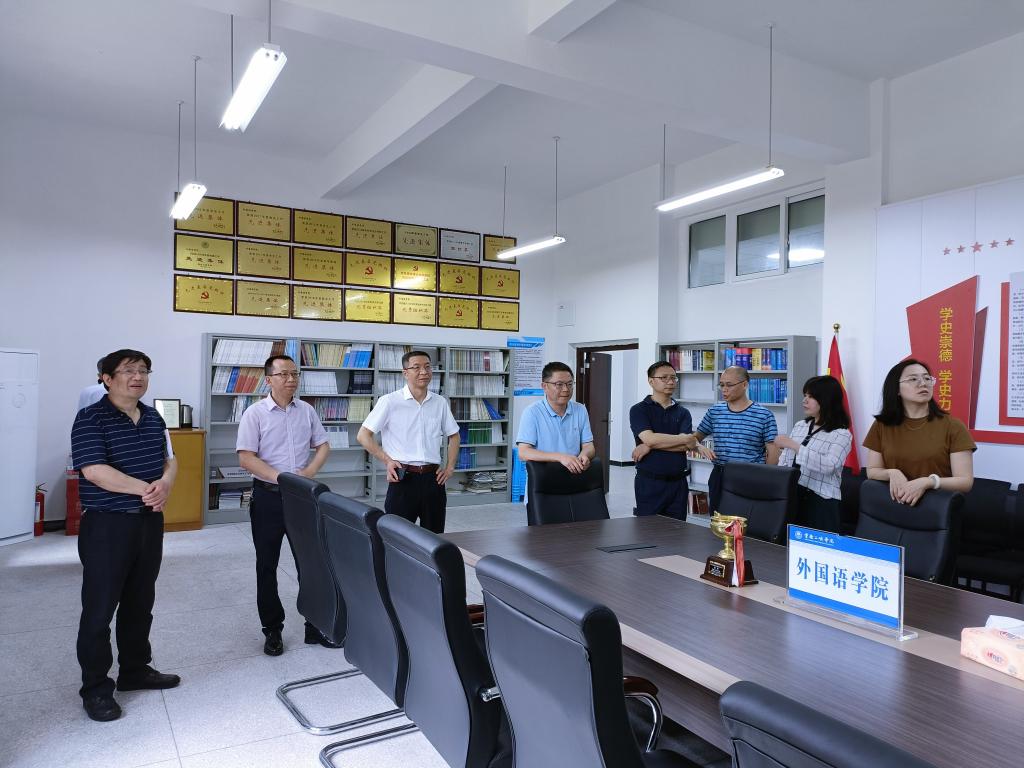6月1日,校长张伟、副校长付川、副校长郭作飞、质评处处长方刚、教务处处长王良伟一行来我院检查指导师范专业认证准备工作。