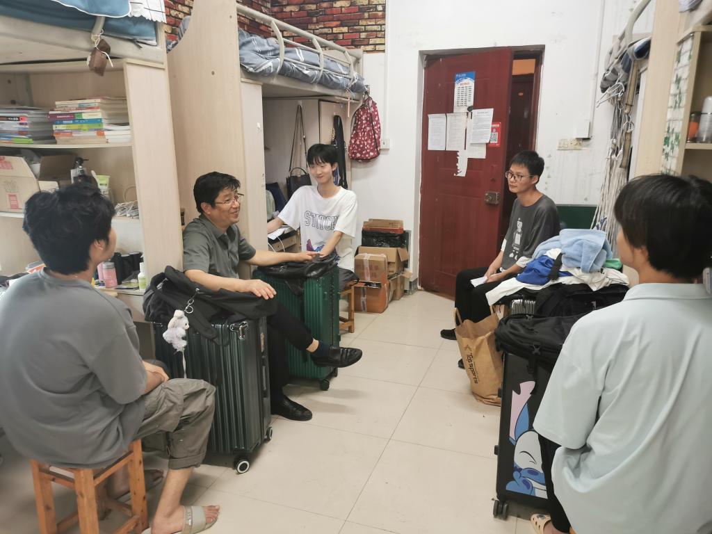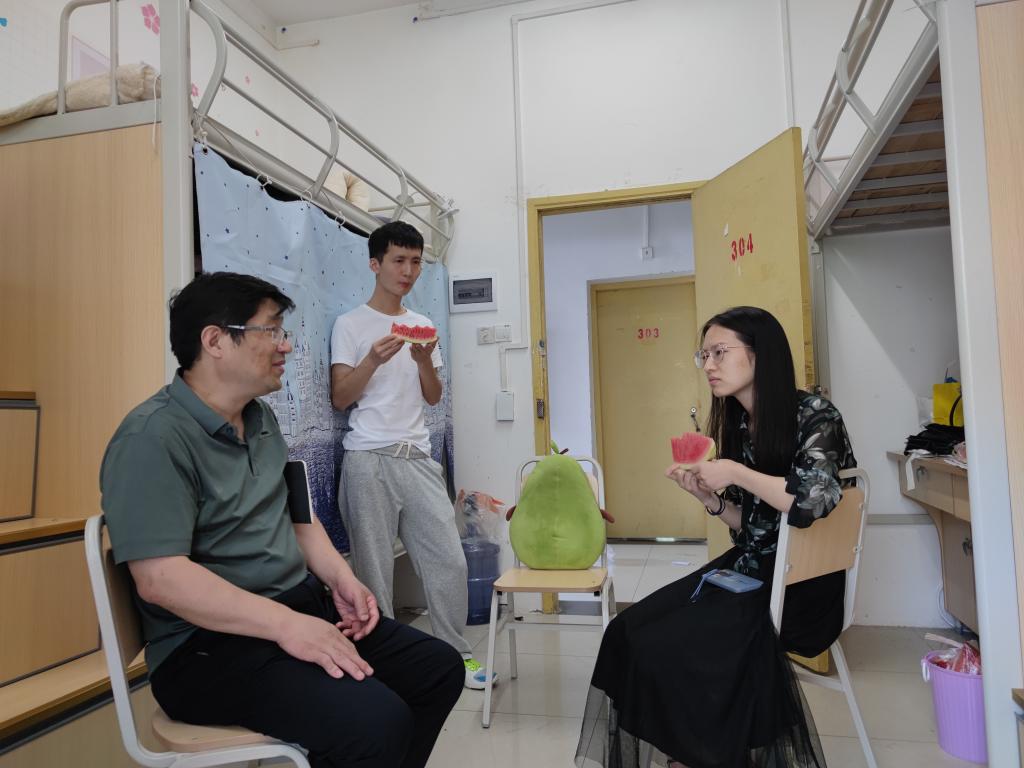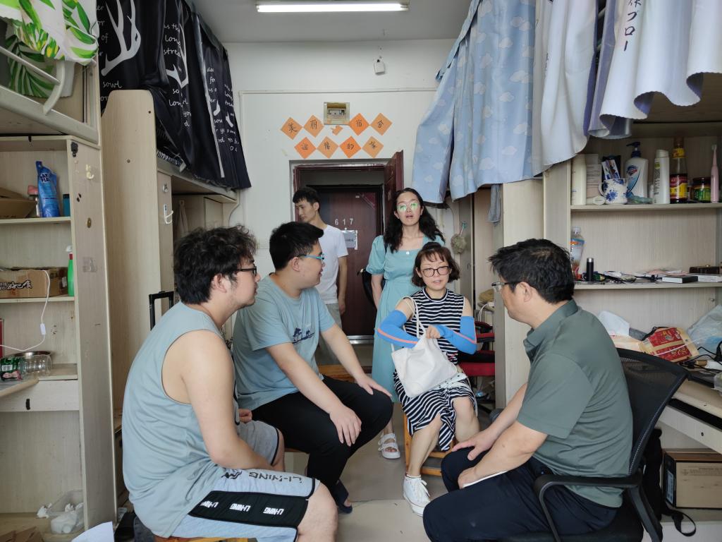 6月30日上午,学院党总支书记甘长银、学工办主任杨华带领全体辅导员走访各年级学生宿舍。