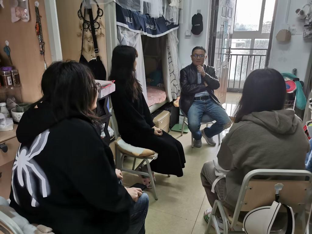 走访中,师生之间进行了亲切交流,同学们热情主动地向老师们汇报自己近期的学习、生活与思想状况,并提出一些问题和诉求。老师们都进行了积极的回应,并给同学们提出了一些建议和期望:第一,养成良好的学习和生活习惯,构建优良的室风、班风;第二,学习要厚基础宽口径,选择适合的学习方法,加强通识教育和思维能力培养;第三,做好学习规划、职业规划,在提升专业能力的同时,不断提高自身的综合素质; 第四,注意用水用电安全、交通安全,共同营造和谐安全的校园环境。