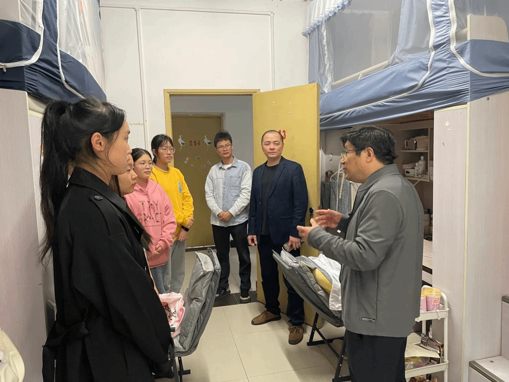 为进一步关心了解同学们近期的学习、生活状况以及思想动态等, 营造健康、安全、有序的学习生活环境和氛围,11月2日下午,我院党总支书记甘长银、院长刘晓林、副院长唐淑华、副书记/副院长孔云军、全体辅导员,共同深入学生宿舍,与同学们面对面交流。