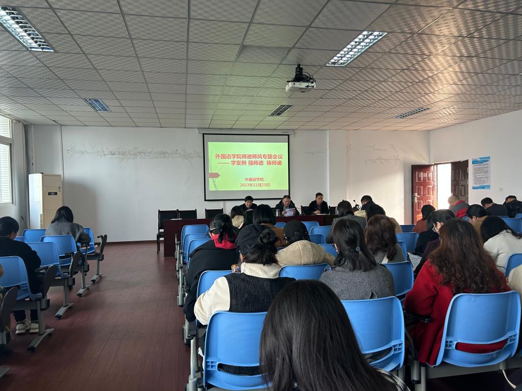 首先,学院院长刘晓林介绍了教育部公开曝光的第十三批7起违反教师职业行为十项准则的典型案例,并要求老师们加强自律行为,引以为戒。学院副院长唐淑华强调,教师是人类灵魂的工程师,是人类文明的传承者,首先要规范自我职业行为,明确师德底线,务必把教师育人、为人师表的要求铭记于心,同时,要增强教师职业的责任感、使命感、荣誉感,落实立德树人根本任务。