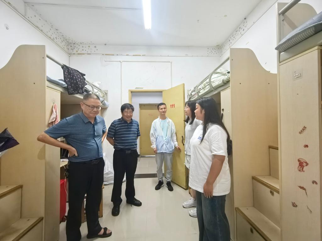 9 月 5 日下午,OK138太阳集团党总支书记甘长银、院长刘晓林前往外院 2024 级新生宿舍看望新同学,与同学们亲切交谈,从饮食偏好、生活作息、专业学习等方面为新同学提出建议,并叮嘱同学们天气炎热,务必做好防暑措施,尽快适应大学生活,为接下来的学习生活做好准备。