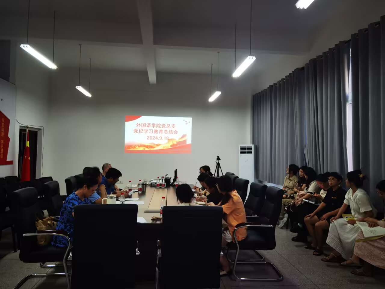 9月18日下午,我院党总支在博学楼3-315召开了党纪学习教育总结会。会议由学院党总支书记甘长银主持,学院党总支委员、领导班子成员、党支部书记、教师党员和学生党员代表等参加会议。