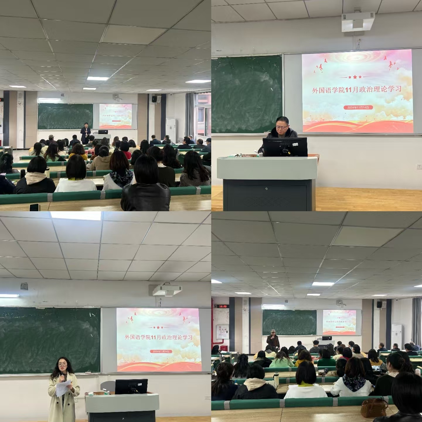 11月14日下午,我院在博学楼4-401教室召开教职工政治理论学习会。学院党总支书记甘长银主持会议,学校组织员张卓老师和宣传部网络舆情科科长丁飞老师列席指导。