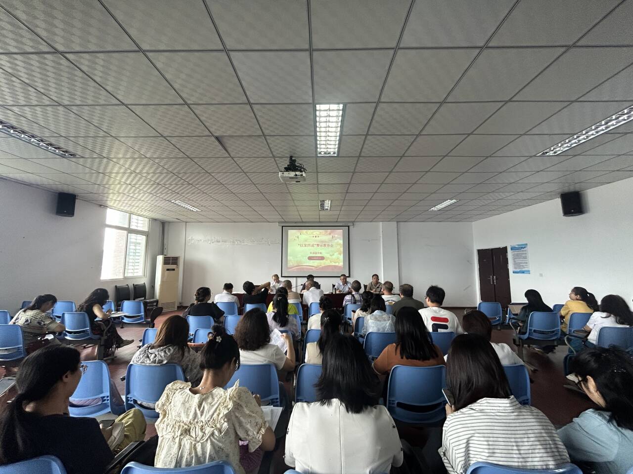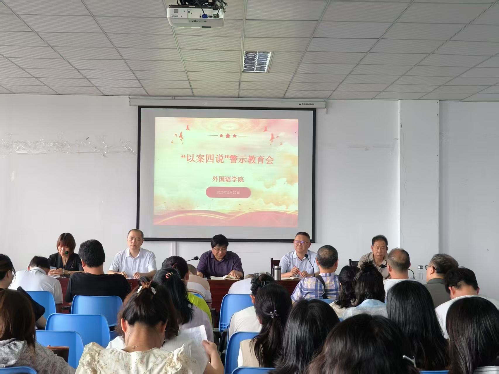 在“以案四说”警示教育会上,甘长银介绍了7起发生在全国高校的典型负面案例,学院4名班子成员围绕案例分别“说纪”、“说法”、“说德”、“说责”。