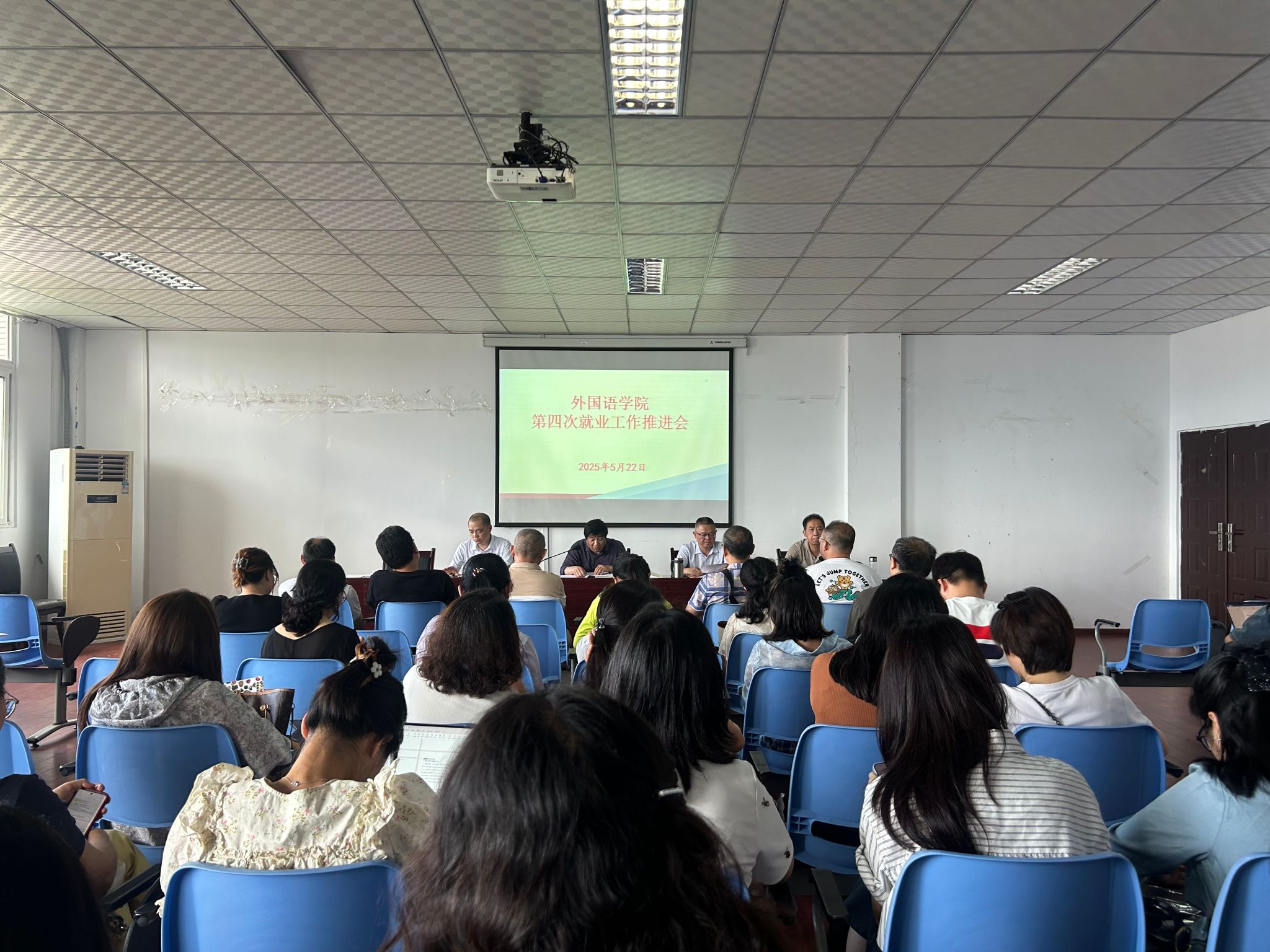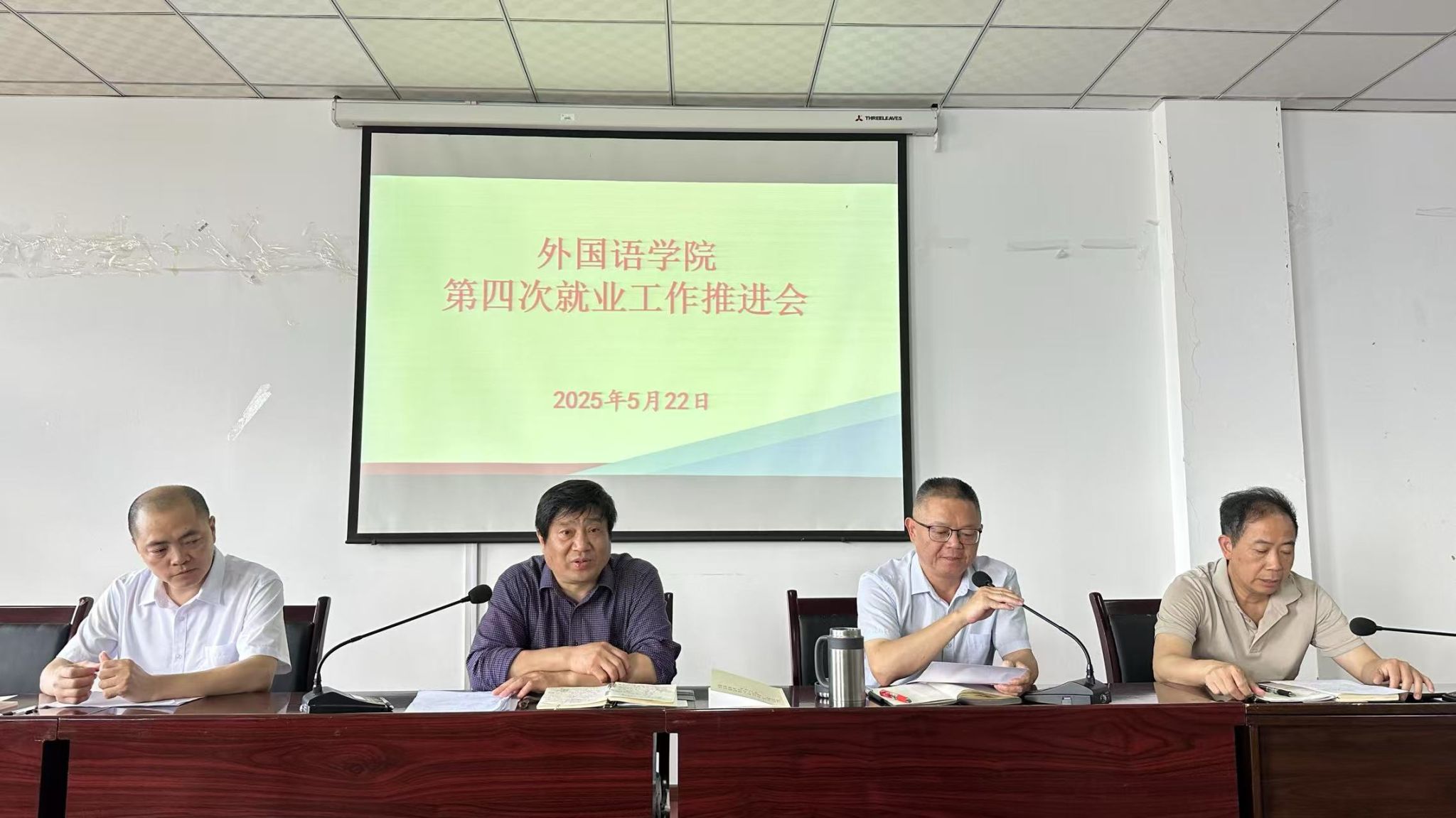5月22日,我院在明辨楼1-604召开了就业工作推进大会。学院班子成员、全体就业指导老师参会,学院党总支书记甘长银主持会议。