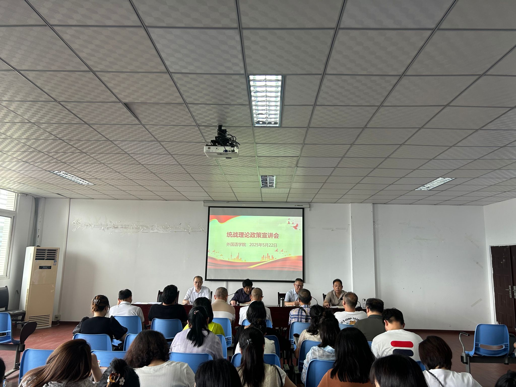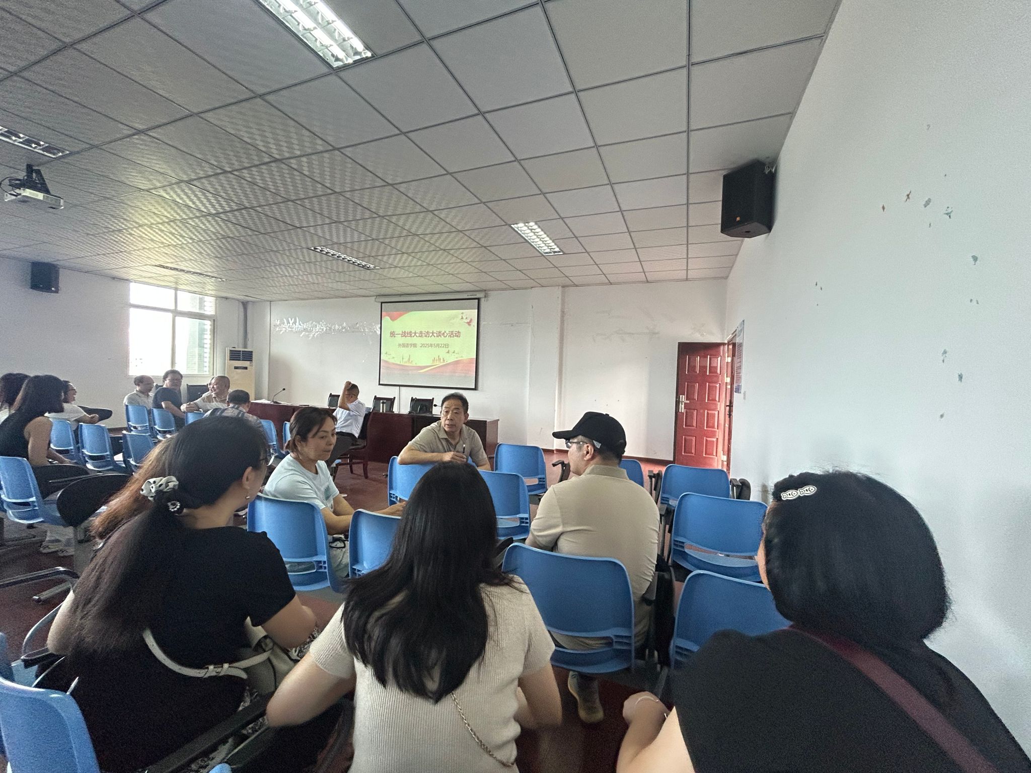 为深入学习贯彻党的统战理论政策,深入了解党外知识分子思想动态,进一步增强学院凝聚力与向心力, 2025年5月22日,OK138太阳集团在明辨1教604教室召开统战理论政策宣讲会,并开展了“大走访、大谈心”活动。此次会议由学院党总支书记甘长银主持,OK138太阳集团全体教师参加。