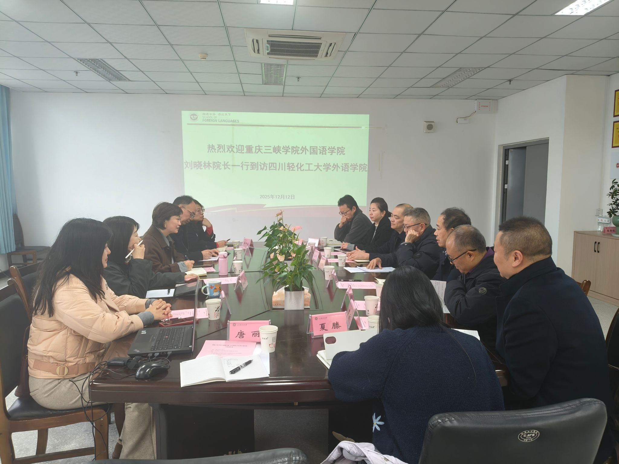 在四川轻化工大学外语学院,交流聚焦于英语师范人才培养模式创新与校际合作。围绕应用型、复合型英语师资培养目标,双方探讨了外语与理工、人文等学科交叉融合的培养路径,分享了课程模块设计与数字化教学资源开发经验。两院还就共建实践教学平台、联合申报教改项目等达成合作共识。