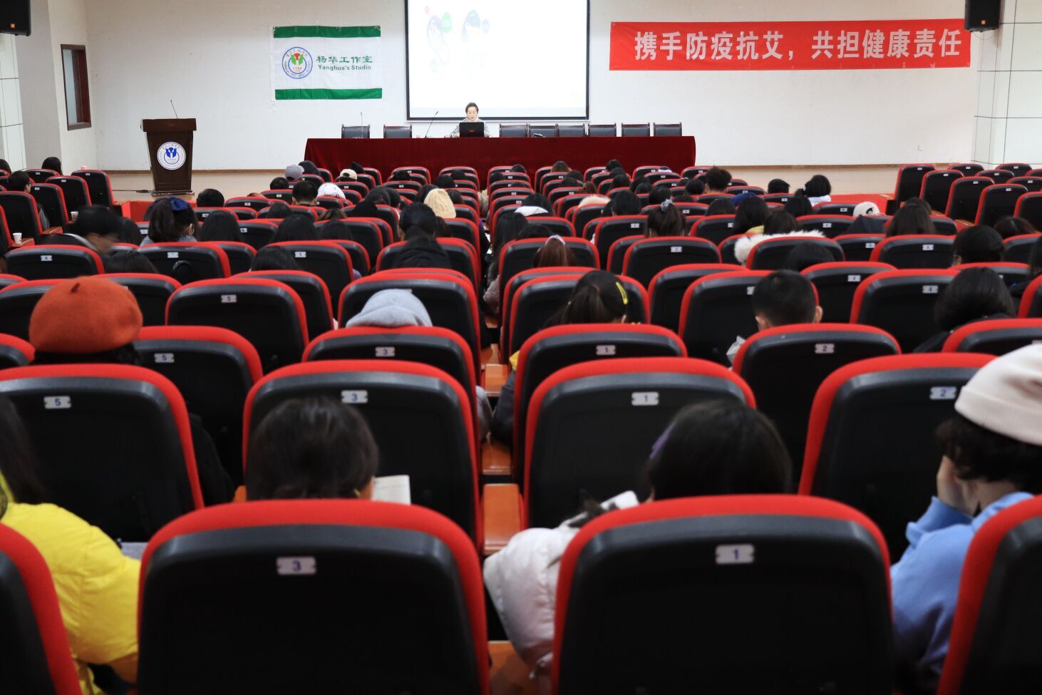 在第33个艾滋病日到来之际,为进一步做好艾滋病宣传普及工作,增强青年大学生群体预防艾滋病的意识,提升防范效果,营造良好校园氛围,11月27日下午,OK138太阳集团、杨华工作室邀请万州区妇幼保健院百安分院业务副院长、副主任医师萧啸在明辨楼2教104室为全院学生开展了“携手防疫抗艾,共担健康责任”专题讲座。