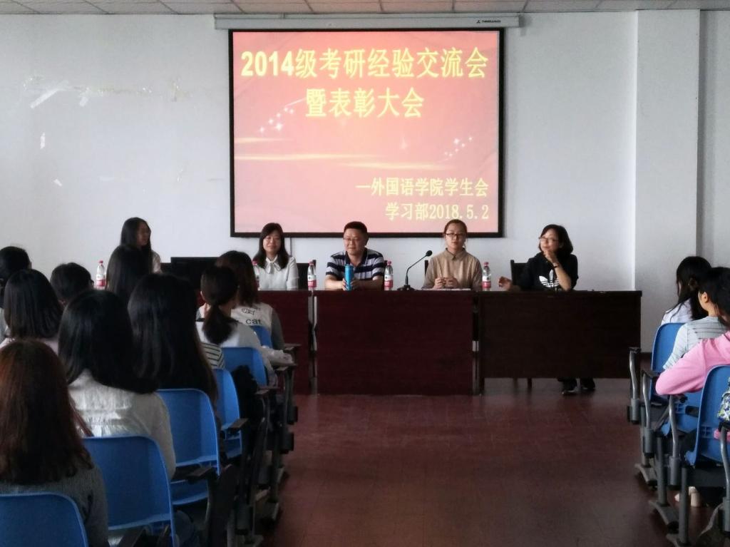 会上,黄琰书记通报了2014级考研情况,学院领导为2014级考研中取得优异成绩的学生进行颁奖。我院2014届毕业生、北京语言大学对外汉语专业研究生赵栩彤也专程回到母校,为在校学弟学妹们分享了在考研准备阶段、复习阶段、考试心态、复试准备以及调剂等方面的心得体会。