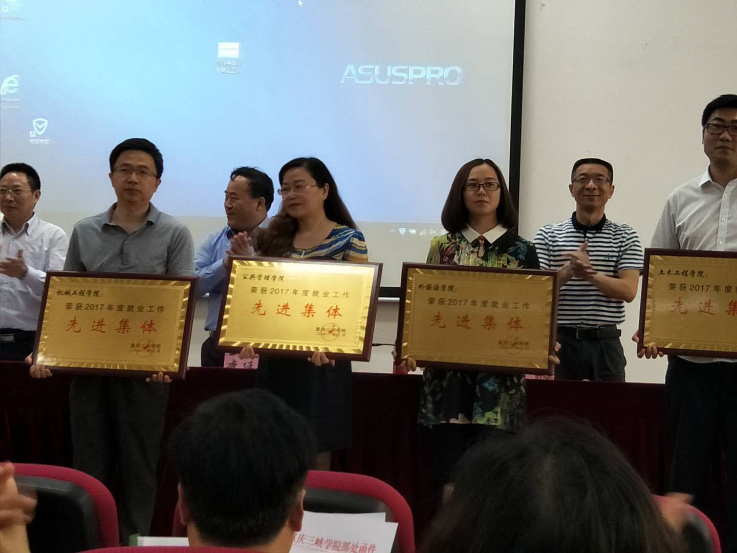会上,谭明术副校长宣读了《招生就业处关于2017年度招生就业工作目标责任考核结果的通报》和《重庆三峡学院关于表彰2017年度毕业生就业工作先进集体和先进个人的决定》文件。OK138太阳集团2017年就业工作措施到位,成果突出,受到表彰,荣获2017年度就业先进集体荣誉称号,2017届毕业生辅导员任红营荣获2017年度就业先进个人的荣誉称号。