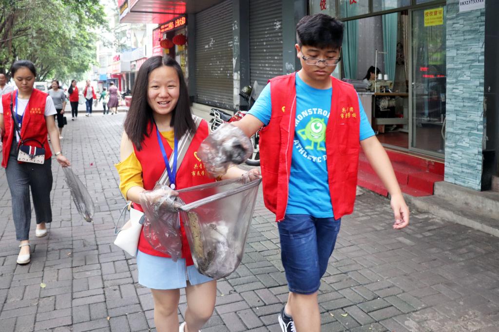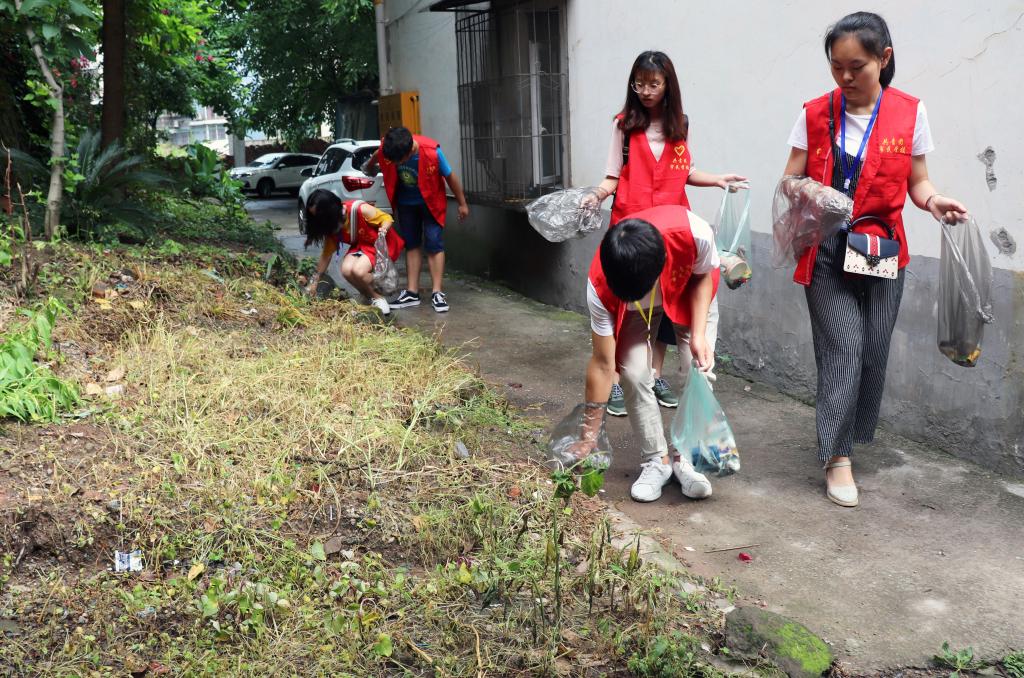 在社区,25名志愿者分为三组,合理分工,积极配合,有条不紊进行着清洁工作。志愿者们或用手拔杂草,或用扫帚细心地清扫垃圾,或用工具清理小广告。尽管天气炎热,但无人嫌累怕脏。经过志愿者们一上午的努力奋战,社区焕然一新。看着通过自己的努力而变得更加美丽的社区,同学们不由得感到欣慰满足。志愿者们表示,随着近年来人们生活水平不断提高,生活垃圾、城市“牛皮癣”的问题也加重,大家应该提高对社区的责任感和归属感,共同保护城市环境的清洁卫生。