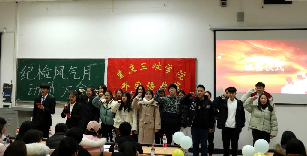 活动现场,纪检部干事组织全体同学观看了关于“纪检部日常工作展示”相关视频,号召全体同学遵守学校规章制度,争做遵纪守纪的三峡好青年;最后,纪检部干事还带领全体同学宣誓,同学们庄重承诺要自觉遵守校规校纪,严于律己,争创文明新风尚。