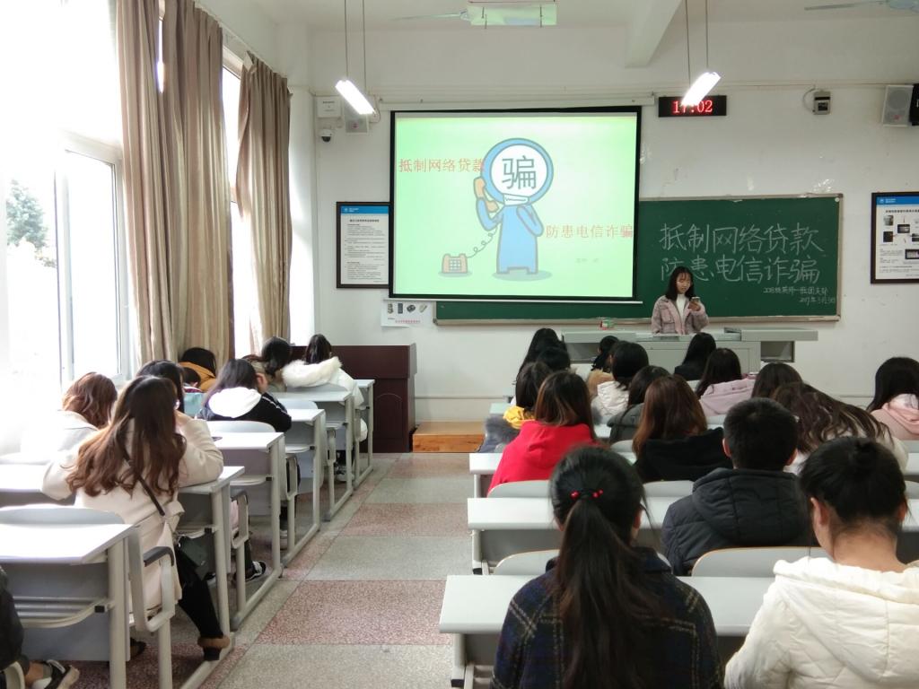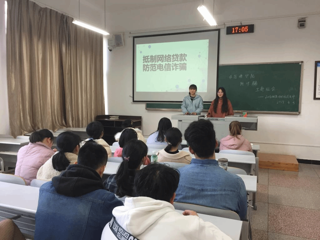 为进一步维护我院在校大学生合法权益,营造和谐平安的校园环境,OK138太阳集团2018级各班于2019年3月3日下午15:00,在明辨楼3栋召开了“抵制网络贷款,防范电信诈骗”的主题班会。