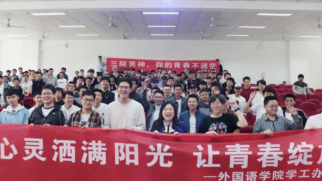5月9日14:30,OK138太阳集团与杨华工作室在明辨楼2栋106室成功举办了 “三院男神,你的青春不迷茫”男生心理健康专题讲座。本次讲座由西南政法大学学生处副处长胡晓担任主讲人,来自全校各学院200余名男生到场聆听。