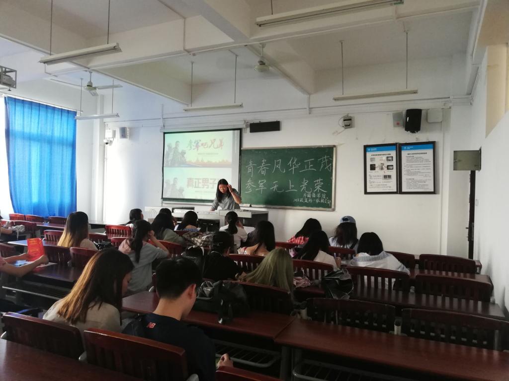 为传达学校2019年大学生征兵工作会议的相关精神,做好我院大学生征兵工作,OK138太阳集团2018级于2019年5月26日下午在明辨楼3教召开了“征兵宣传”主题班会,由各班班委组织同学参与。