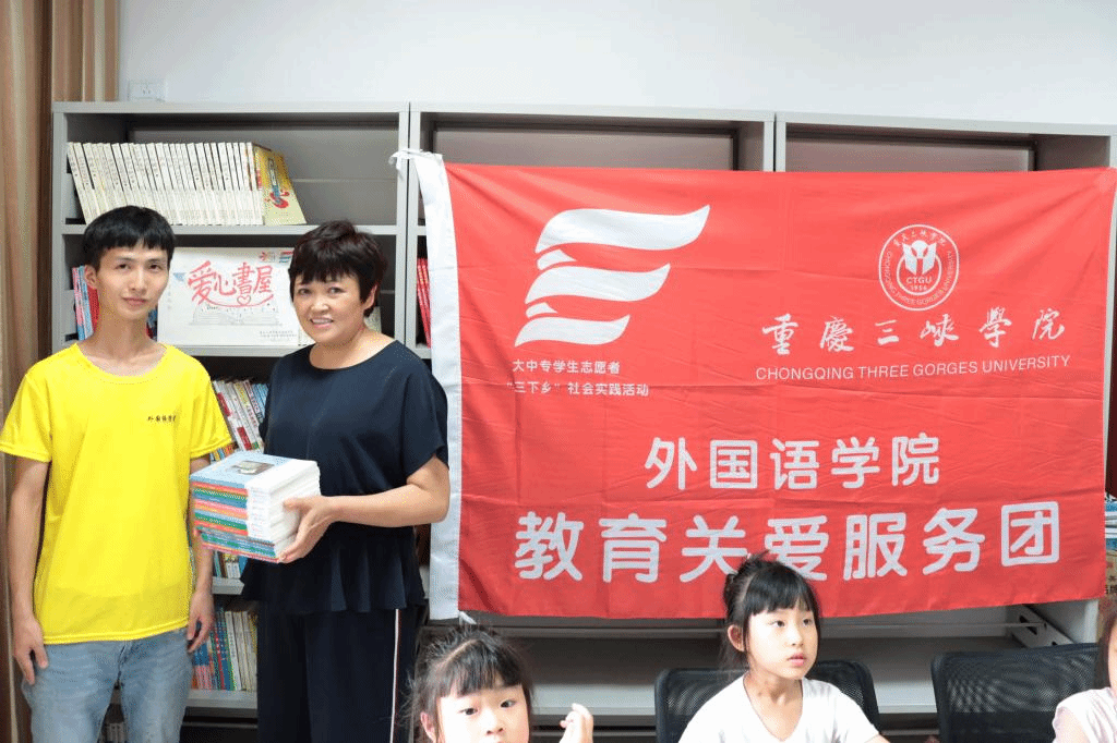 秉承“文化教育扶贫,传播公益大爱”的理念、践行国家“精准扶贫”战略。7月8日上午,重庆三峡学院OK138太阳集团“外院情 中国梦”教育关爱服务团于重庆市万州区龙驹镇为留守儿童举办了公益捐书活动。龙驹社区龚萍书记、龙驹镇留守儿童代表、“外院情 中国梦”教育关爱服务团带队老师姚小辉以及全体团员参与了此次活动。