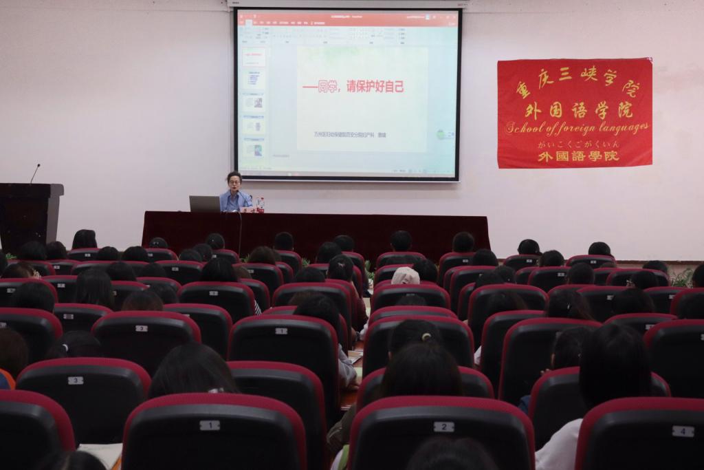 9月24日下午15:45,学院在明辨楼2栋106开展了主题为“同学,请你保护好你自己!”的生理健康教育讲座。万州区妇幼保健院百安分院业务副院长、副主任医师萧啸应邀担任主讲,2019级全体新生到场聆听。