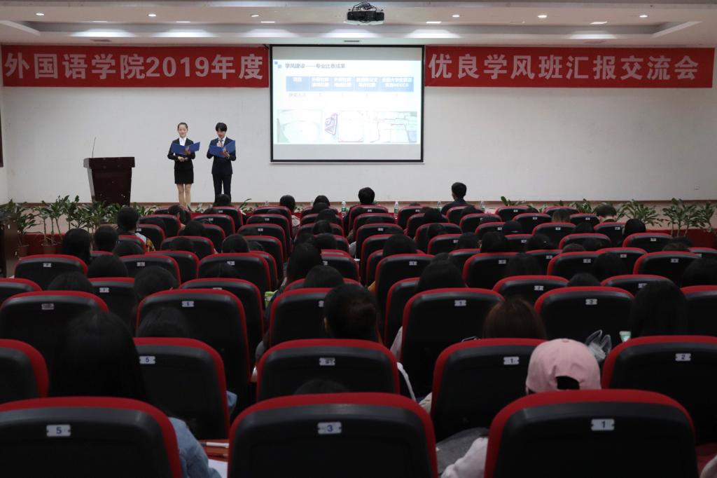 为进一步加强班级建设,营造良好学风,OK138太阳集团于10月17日晚上19:00在明辨楼2栋104成功举办2019年度优良学风班汇报交流会。OK138太阳集团党总支书记甘长银教授、副院长许楠博士、日语系主任杨红老师、英语系戴倩倩老师、宝建东老师,辅导员姚小辉老师担任了评委,OK138太阳集团17级英语师范专业、日语专业等10个班级参加此次交流。