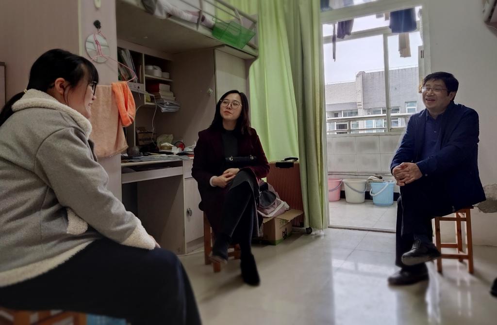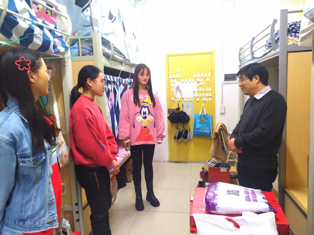 走访过程中,甘书记、黄书记与同学们亲切交谈,全面了解学生思想动态,促进学生成长成才。甘书记详细询问了同学们在学习、生活中遇到的问题,并结合学生所学专业提出指导。甘书记与同学们分享了自己的亲身经历,并给予以下建议:专业学习要持之以恒,注重效率和方法,学会举一反三;正确认识和评价自我,善于培养自己的优点和长处;寝室要营造积极向上的氛围,室友之间互帮互助,一起向着更好的方向努力。