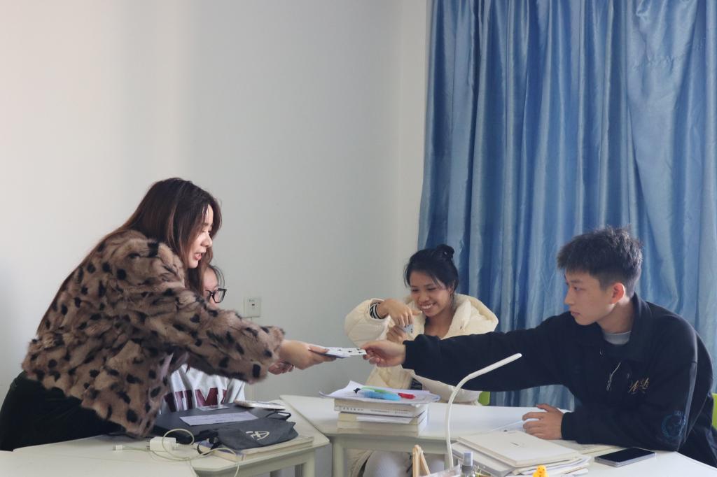 本次日语角的主题为“会話が楽しい恊カゲ一ムをやまりう”(对话合作游戏)。魏老师将同学们分为三组,每组围绕不同的话题进行日语口语练习,在轻松活泼的氛围中同学们提高了日语会话及口语表达能力。