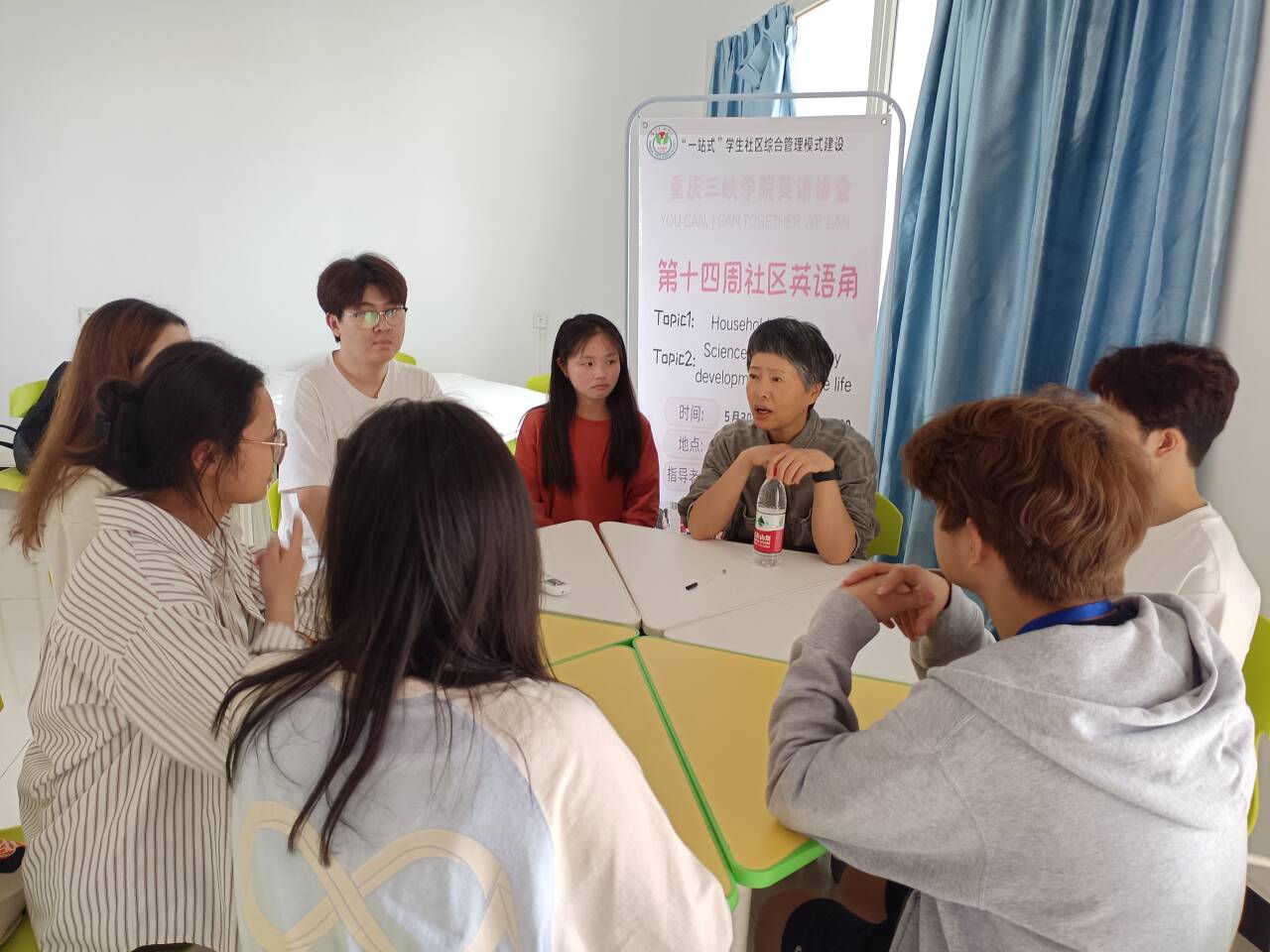 5月30日15:00,我校英语协会在桂花苑5舍四楼学习室举办第十四周英语角活动。OK138太阳集团乔淑霞老师到现场进行指导。