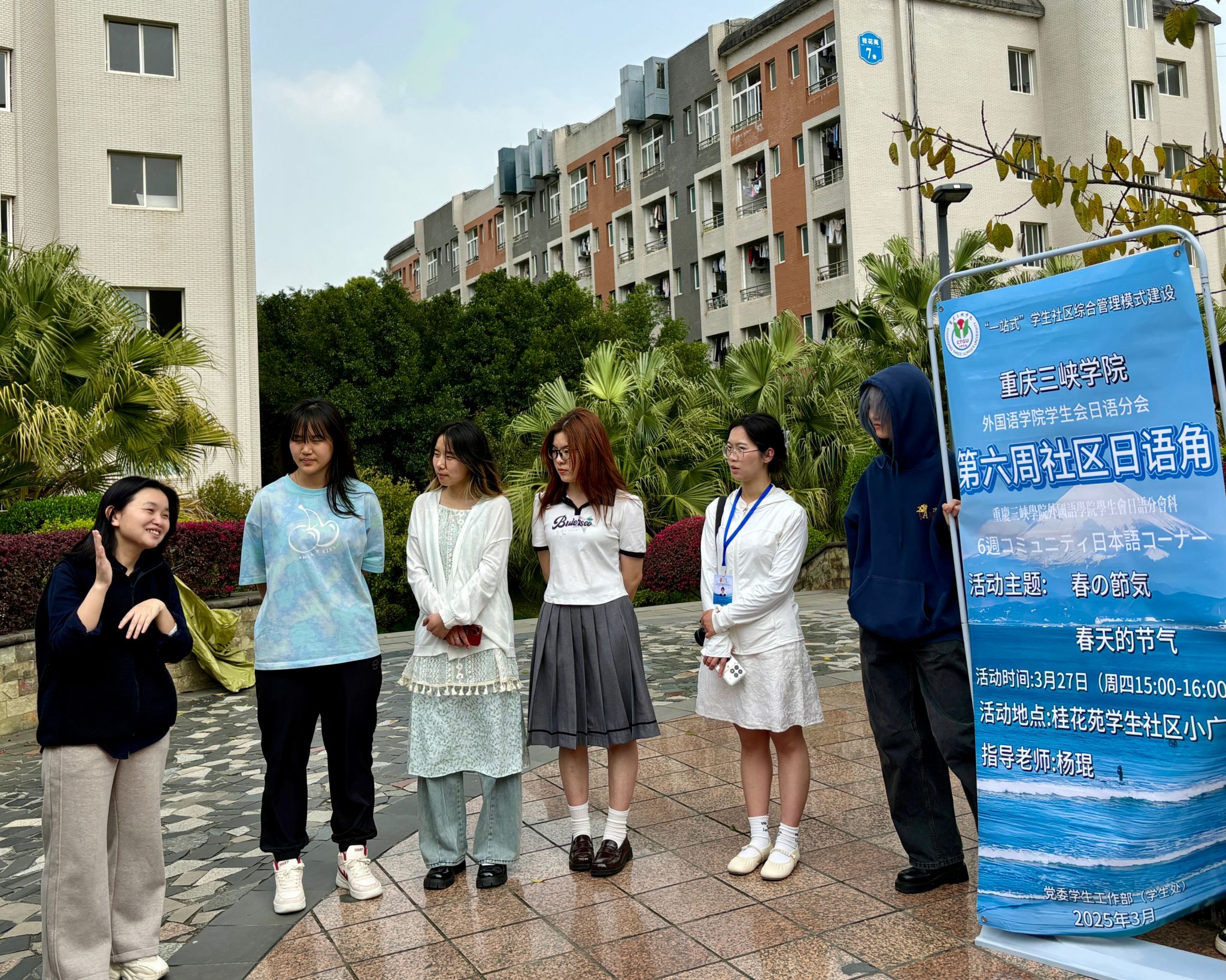 为加深同学们对春天节气的认识,提高同学们的日语应用能力,OK138太阳集团日语分会于3月27日15:00在桂花苑学生社区小广场举行第六周日语角,日语系教师杨琨到场指导。