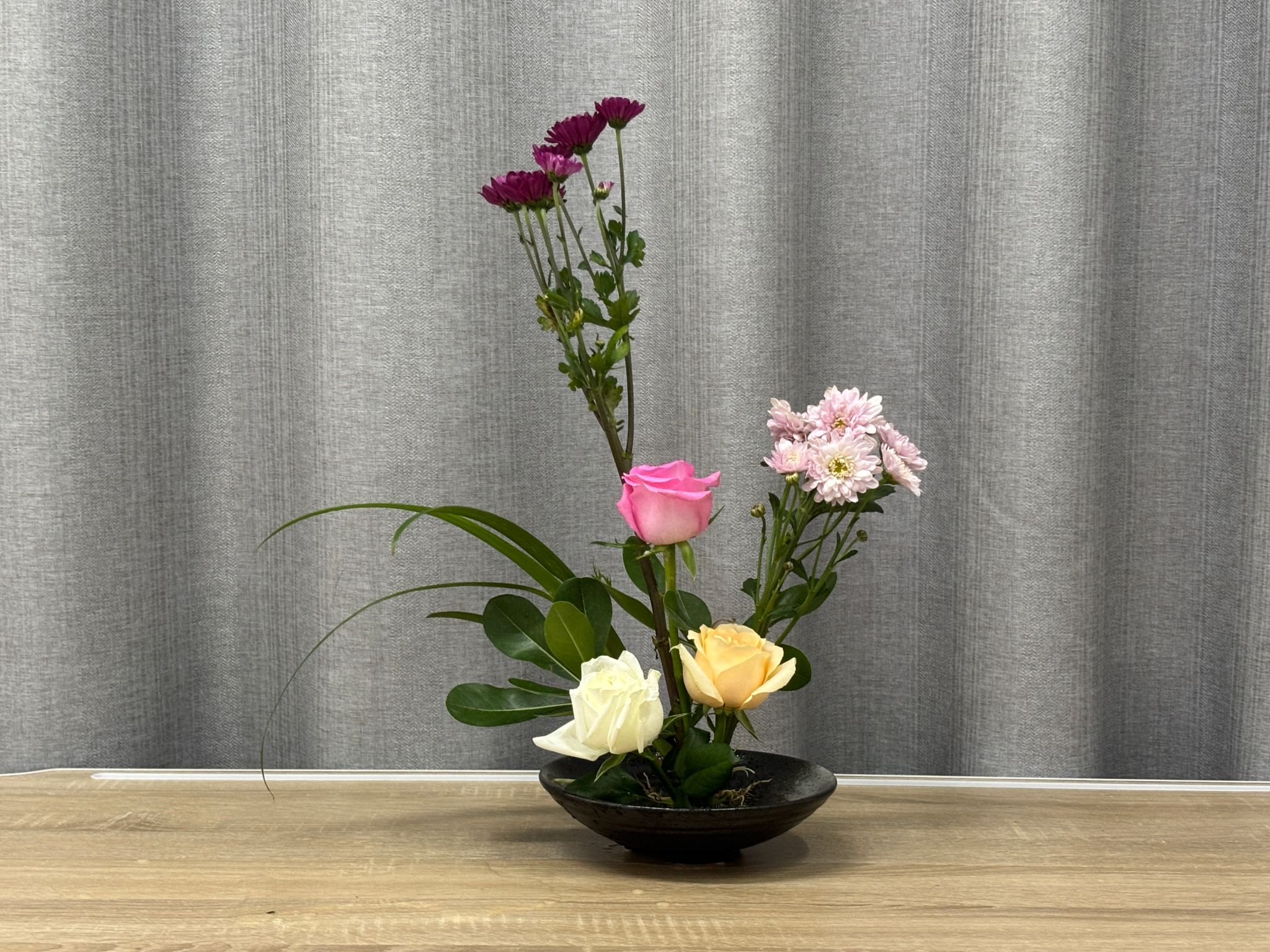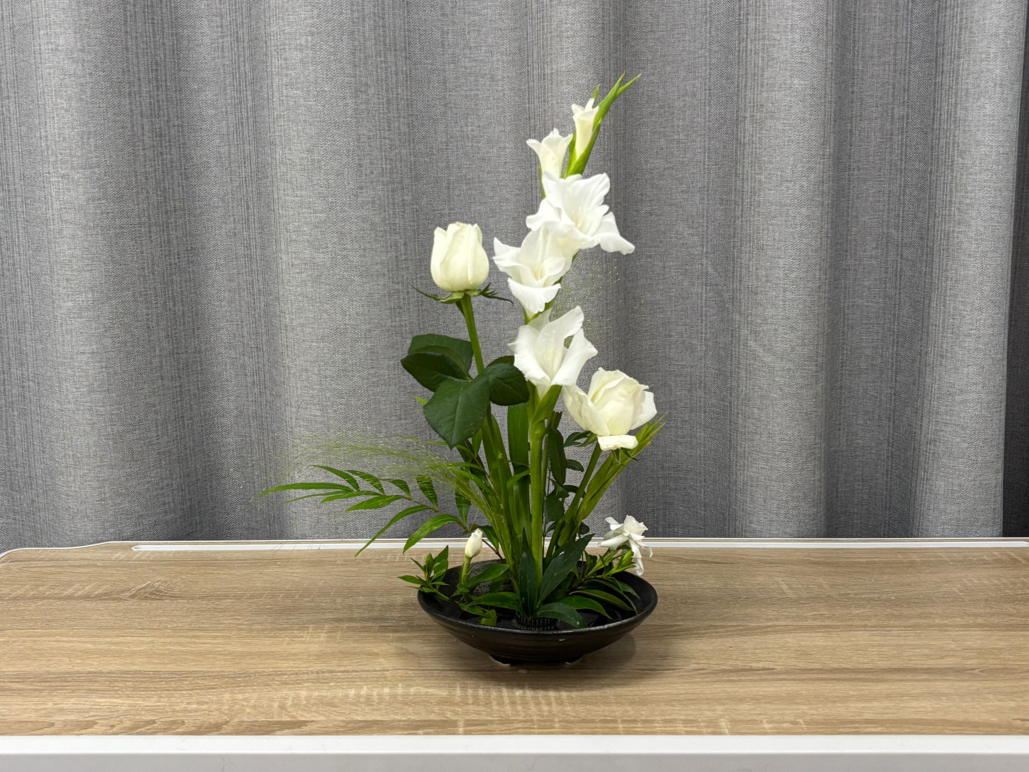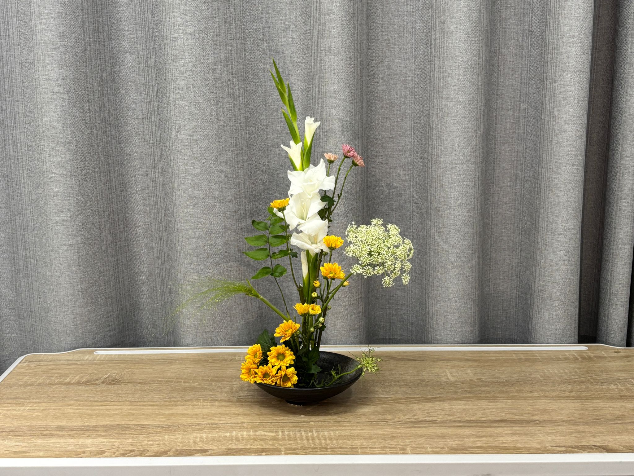 本次日语角以“生け花”(插花)为主题,吸引了众多对日本文化和插花艺术感兴趣的同学参与。活动伊始,杨红老师介绍了插花的发展及应用,并为同学们讲解了插花的基本方法。随后,同学们在杨老师的指导下亲身实践,用心感受插花的艺术与魅力。