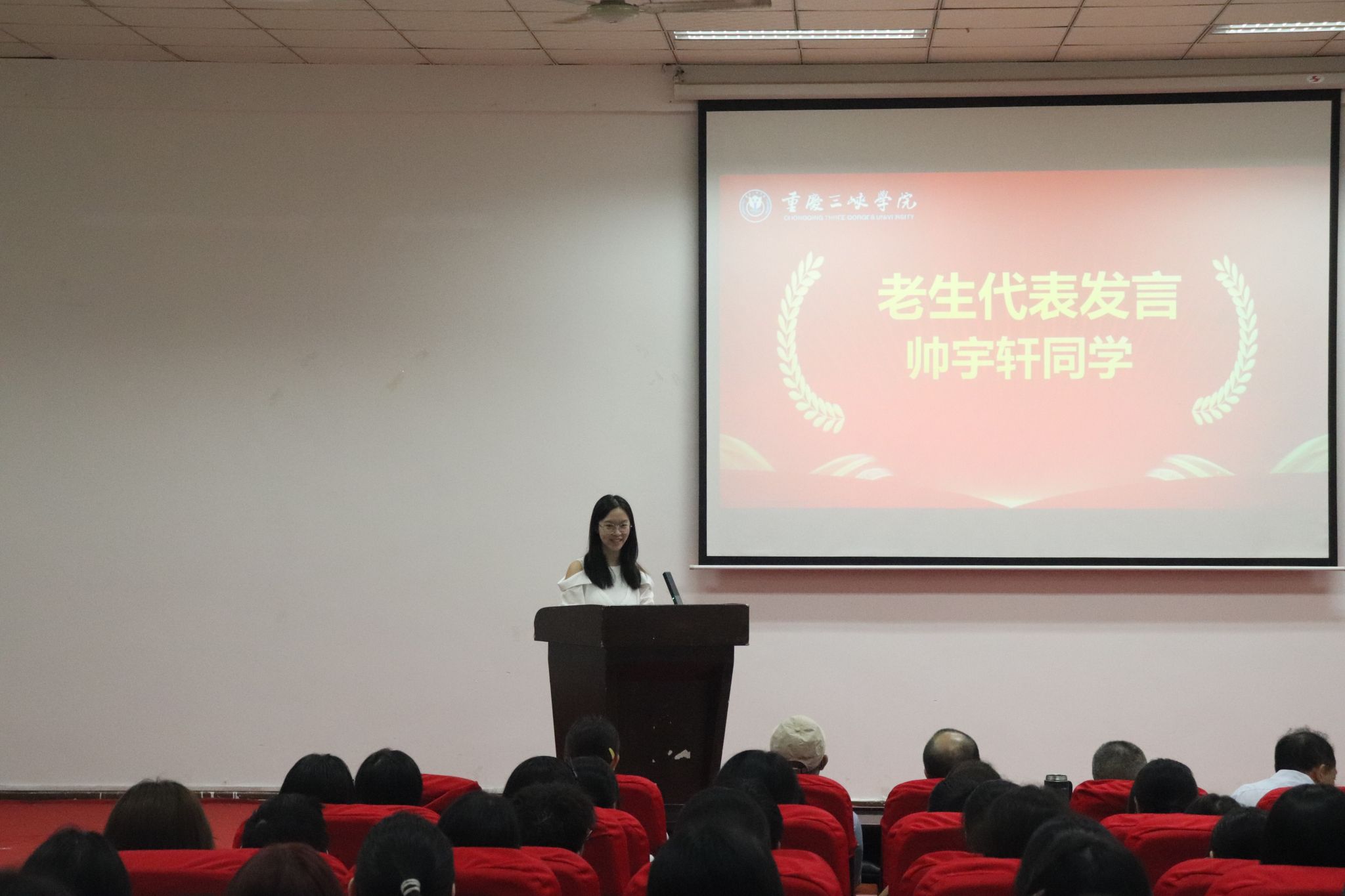 教师代表肖祎勉励即将开启大学生活的全体同学,希望同学们牢记“厚德、博学、自强、创新”的校训,在重庆三峡学院追逐梦想、锤炼本领,同时收获师生之情与同学之谊。
