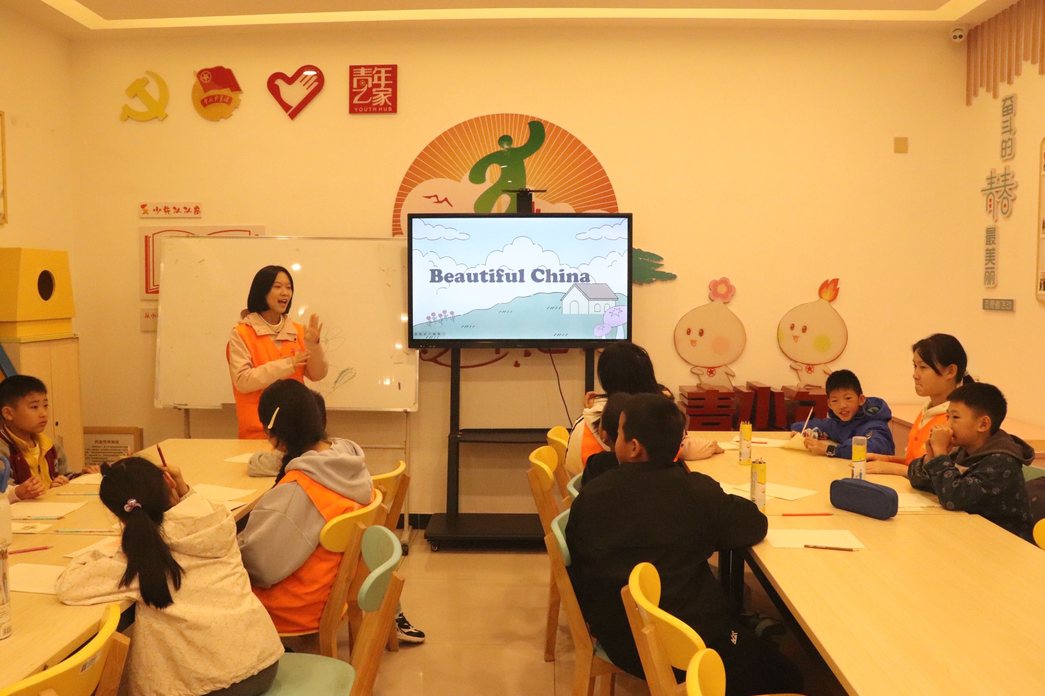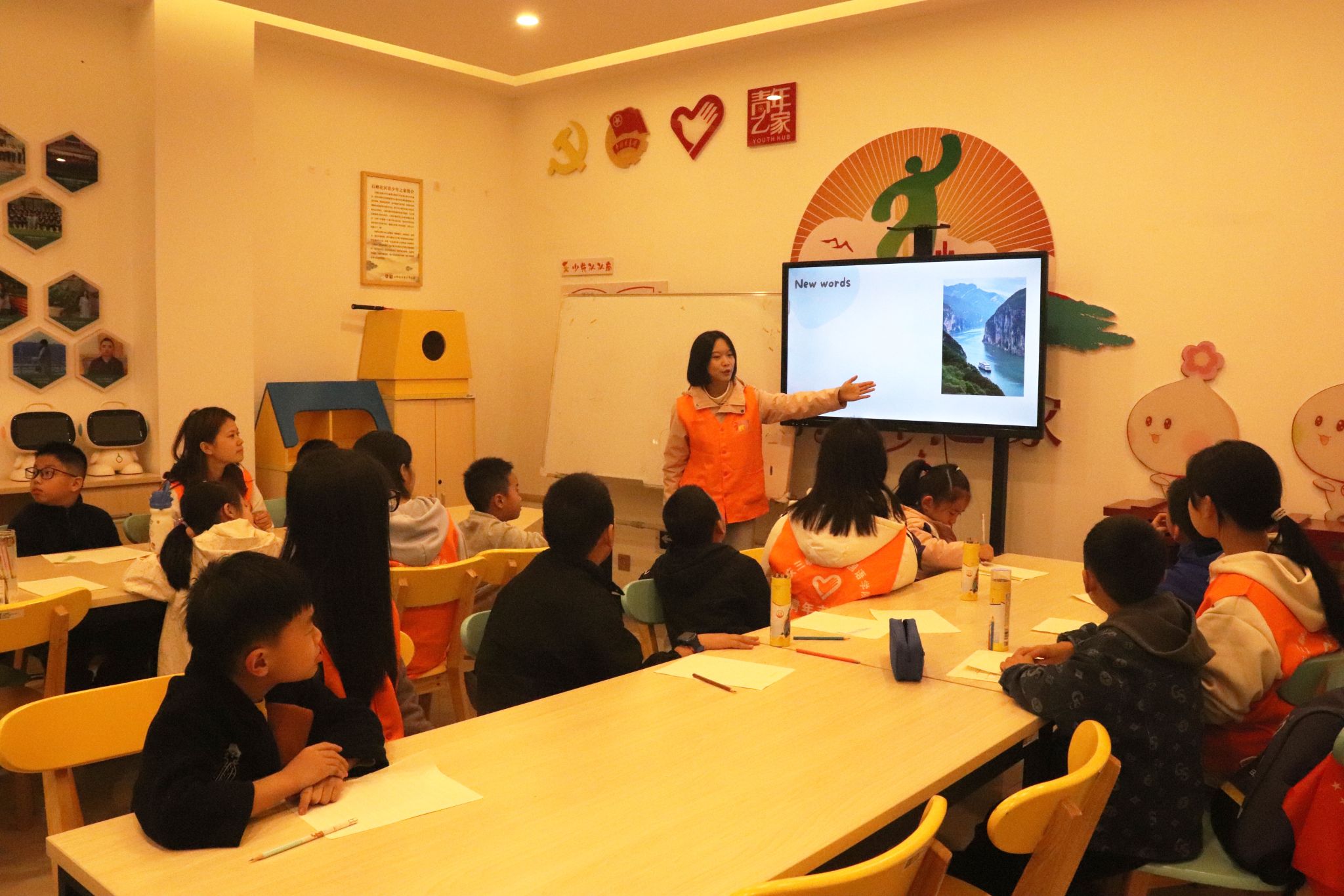 活动以“行走中国·美丽画卷”为主题,创新采用双语教学模式。课程从重庆特色地形地貌出发,通过播放“山环水绕”地貌的宣传片,生动导入“Gorge”(峡谷)、“River”(江河)等英语词汇,让青少年在熟悉的生活场景中感受中国魅力,同时提升英语学习兴趣。