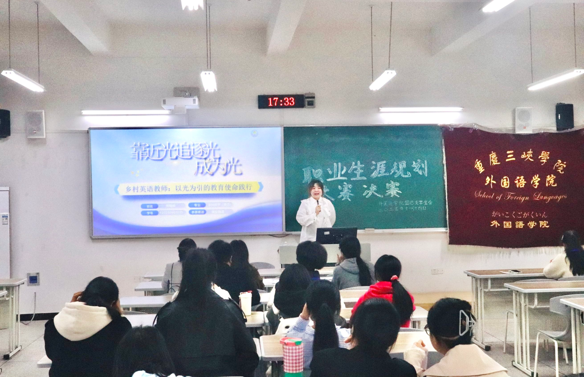 大赛分设“成长”与“就业”两大赛道。经前期选拔,12名选手进入决赛。决赛现场,选手系统阐述职业目标、实施路径与调整方案,逻辑清晰、表达流畅,展现出良好的信息整合能力与职业认知。答辩过程中,评委围绕个人规划细节提问,结合行业趋势提供指导,帮助选手优化发展方向。向明霞老师在点评中充分肯定选手表现,并分享职业发展经验,鼓励大家以赛促学、持续完善职业规划。