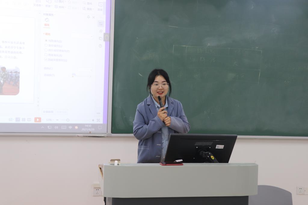 本次公司招聘人员是我院2011级的毕业生姜苗。公司招聘人员首先以自身的读书经历与工作经历进行分享,拉近与同学们的距离,让现场气氛活跃起来。其次,同学们通过观看公司疫情网课、百元公益、春节团建等活动视频大体了解了公司的基本情况。随后,公司招聘人员从集团概况、台州市民办教育培训协会、卓越教育、学问管家、研学基地、薪资待遇等七个方面对公司进行了详细介绍。最后的现场提问环节,同学们根据自身需求提出相关问题,公司招聘人员对同学们的疑惑做了针对性的详细回答。