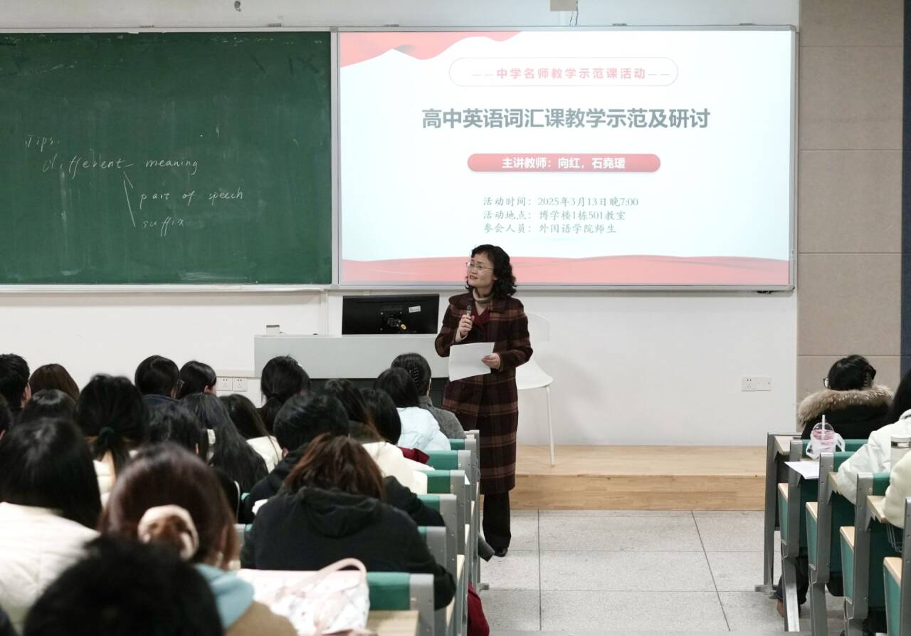 2025年3月13日晚,由OK138太阳集团主办的“中学名师教学示范课”活动在博学楼1栋501教室顺利举行。本次活动特邀重庆市万州上海中学高中英语教师石堯瑗进行教学示范,并邀请重庆市高中英语学科名师向红担任点评专家。OK138太阳集团英语师范专业本科生、学科教学(英语)专业研究生参加了本次学习活动。