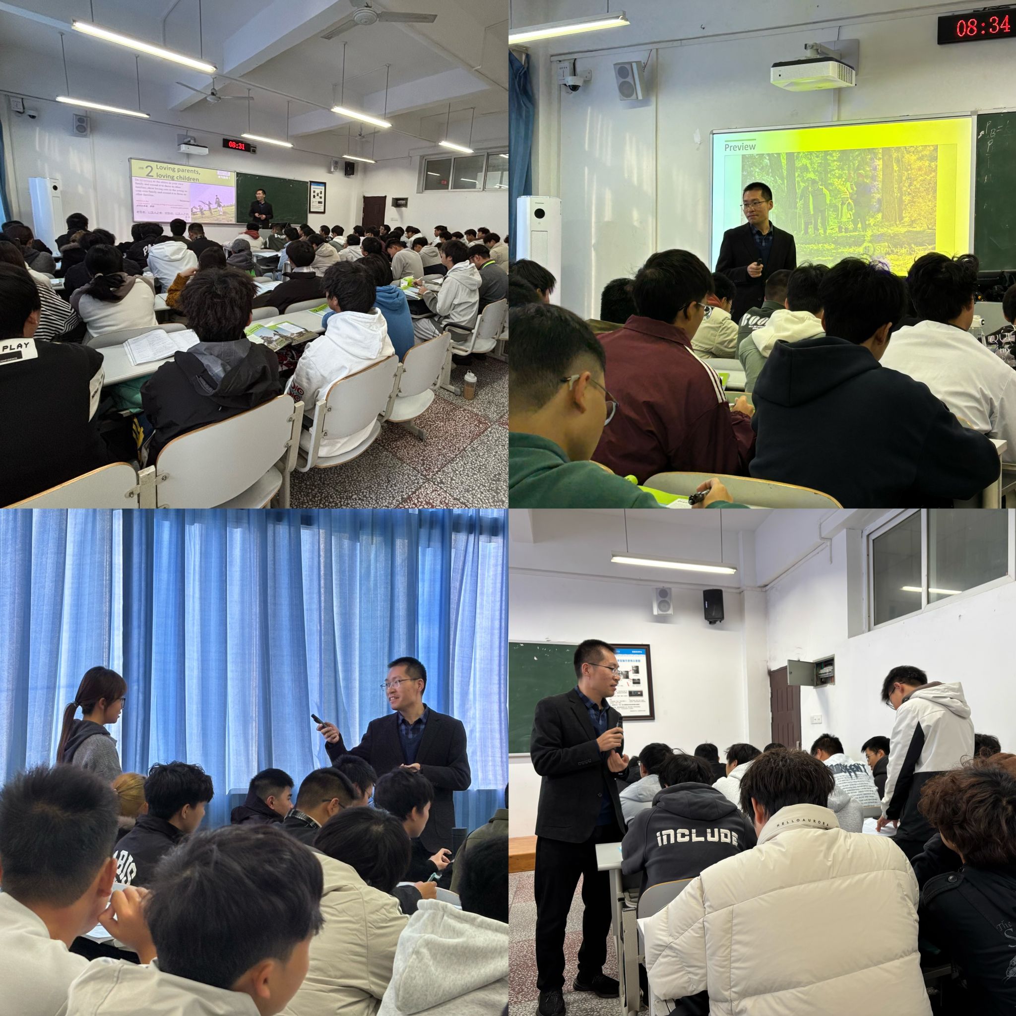 11月5日,大学英语教研部在明辨楼二栋401教室举办了一场精彩的公开课活动。本次公开课由焦裕亮老师主讲,课程内容围绕教材第二单元“Loving Parents, Loving Children”展开,聚焦读写技能训练,兼具语言学习与情感教育双重内涵。
