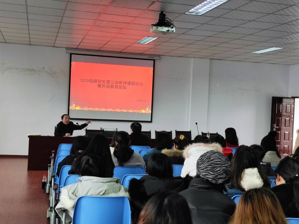 为培养学生发现问题、解决问题的科研能力,OK138太阳集团于2020年12月4日在明辨楼一教604举办了2020级研究生第三次听评课研讨会暨外语教育论坛。其中参会人员有2020级全体研究生、导师、任课教师以及外语教育论坛负责人。