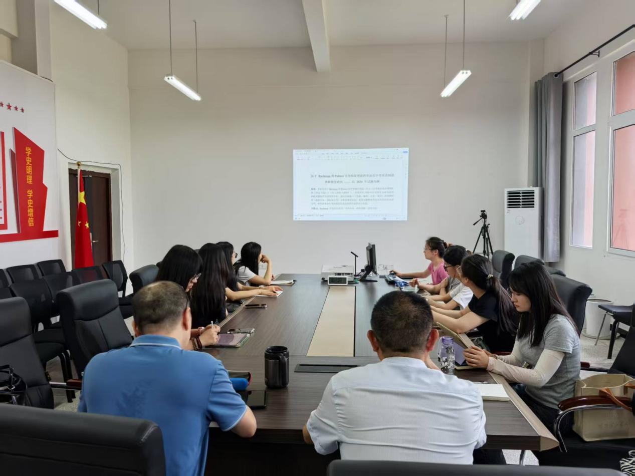 报告会上,蒋双霜率先发言,围绕中考英语,探讨了阅读试题内容效度问题,并提出优化策略;王倩聚焦课堂提问与学生参与度,结合课堂观察与问卷调查,分析不同提问方式对学生参与度的影响,并给出可行的教学建议;最后,郑祖燕针对母语负迁移在英语写作中的表现展开研究,并提出应对策略。汇报结束后,与会人员就汇报情况展开热烈的讨论与交流,导师们逐一进行评价,提出优化论文题目、完善理论基础和合理利用AI学术工具等建议。